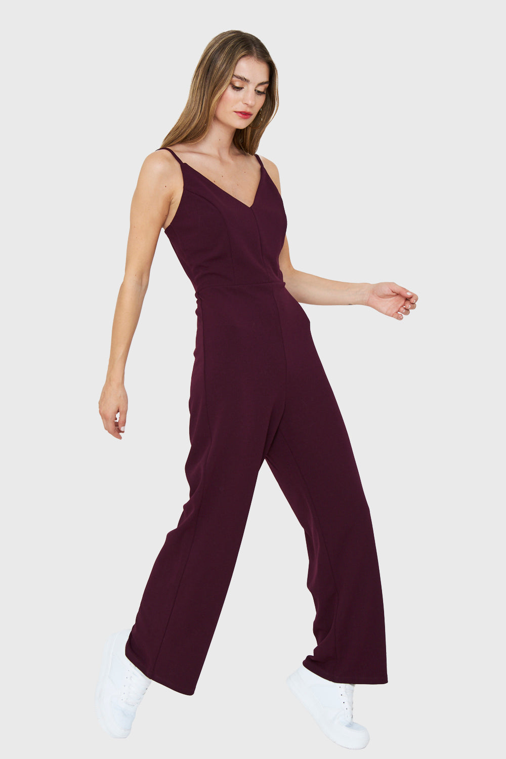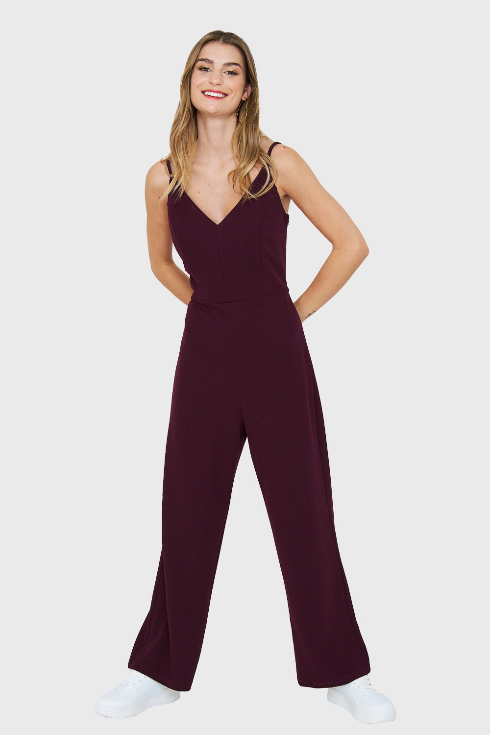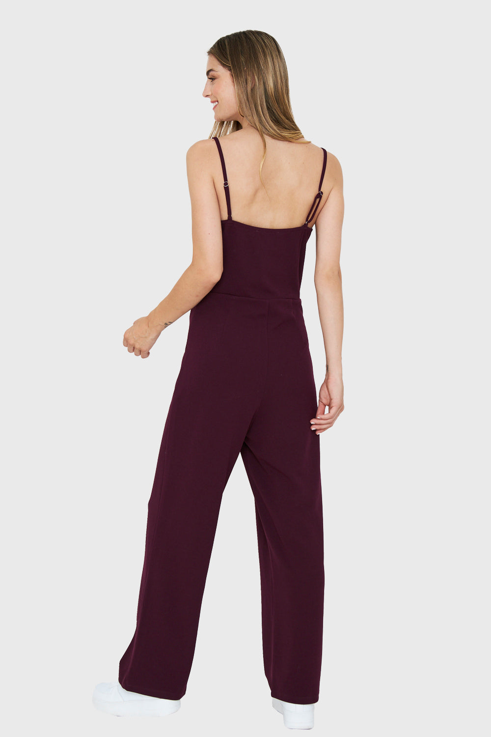 Características: Enterito largo. Tirantes estilo pabilo ajustables. Cierre invisible al costado. Pierna recta. Escote en V.