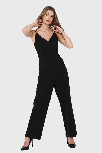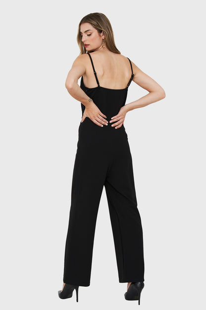 Características: Enterito largo. Tirantes estilo pabilo ajustables. Cierre invisible al costado. Pierna recta. Escote en V.