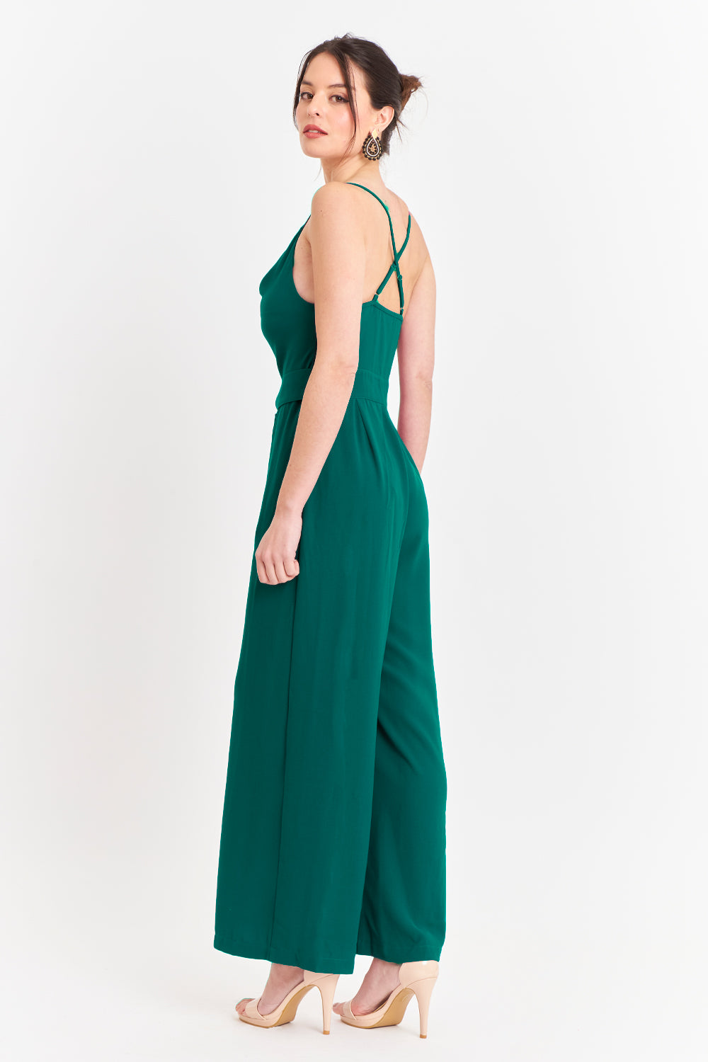 Características: Enterito con tirantes delgados cruzados en la espalda, cierre lateral, cinturón ajustable y bolsillos funcionales.