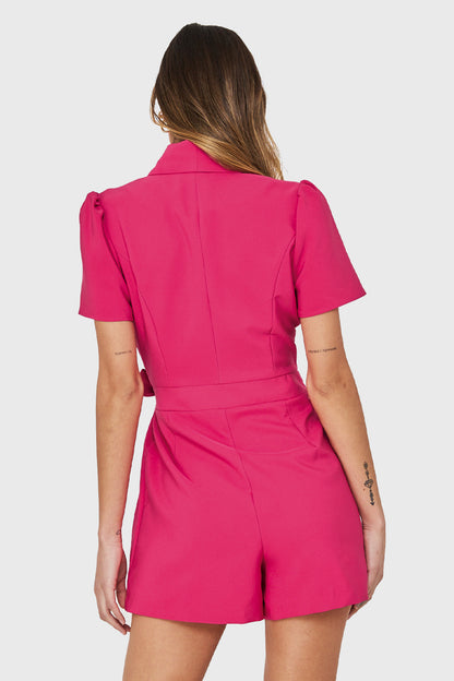 Características: Enterito corto con cuello tipo solapa. Cierre invisible en la parte inferior frontal y lazo de ajuste al costado.