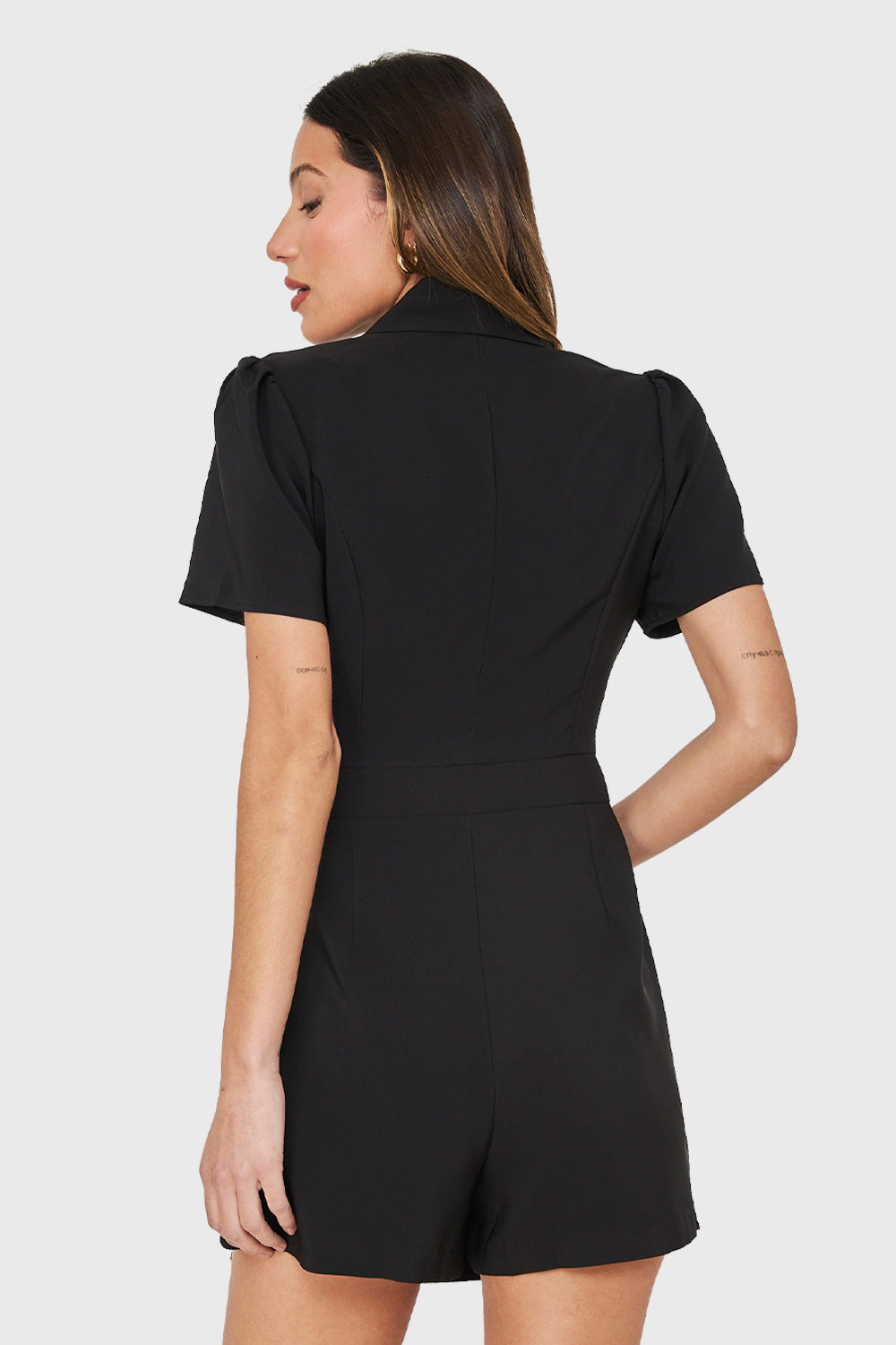 Características: Enterito corto con cuello tipo solapa. Cierre invisible en la parte inferior frontal y lazo de ajuste al costado.