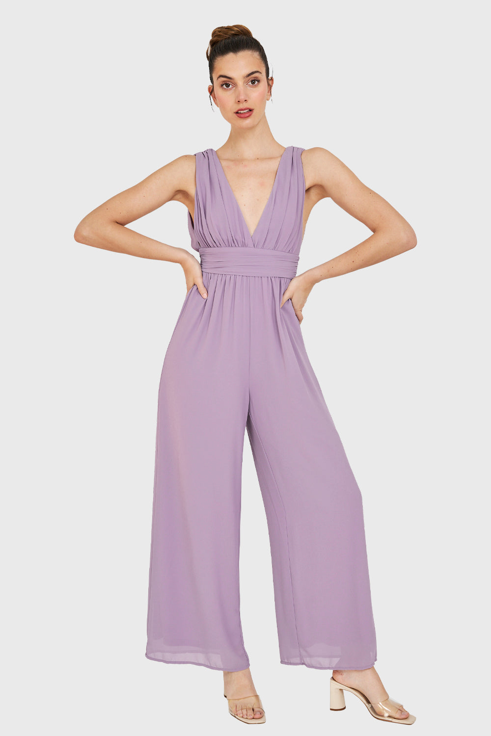 Características: Enterito Griego forrado con escote V profundo. Posee cinturón ancho bajo el busto, cierre en espalda y antideslizantes en hombros.