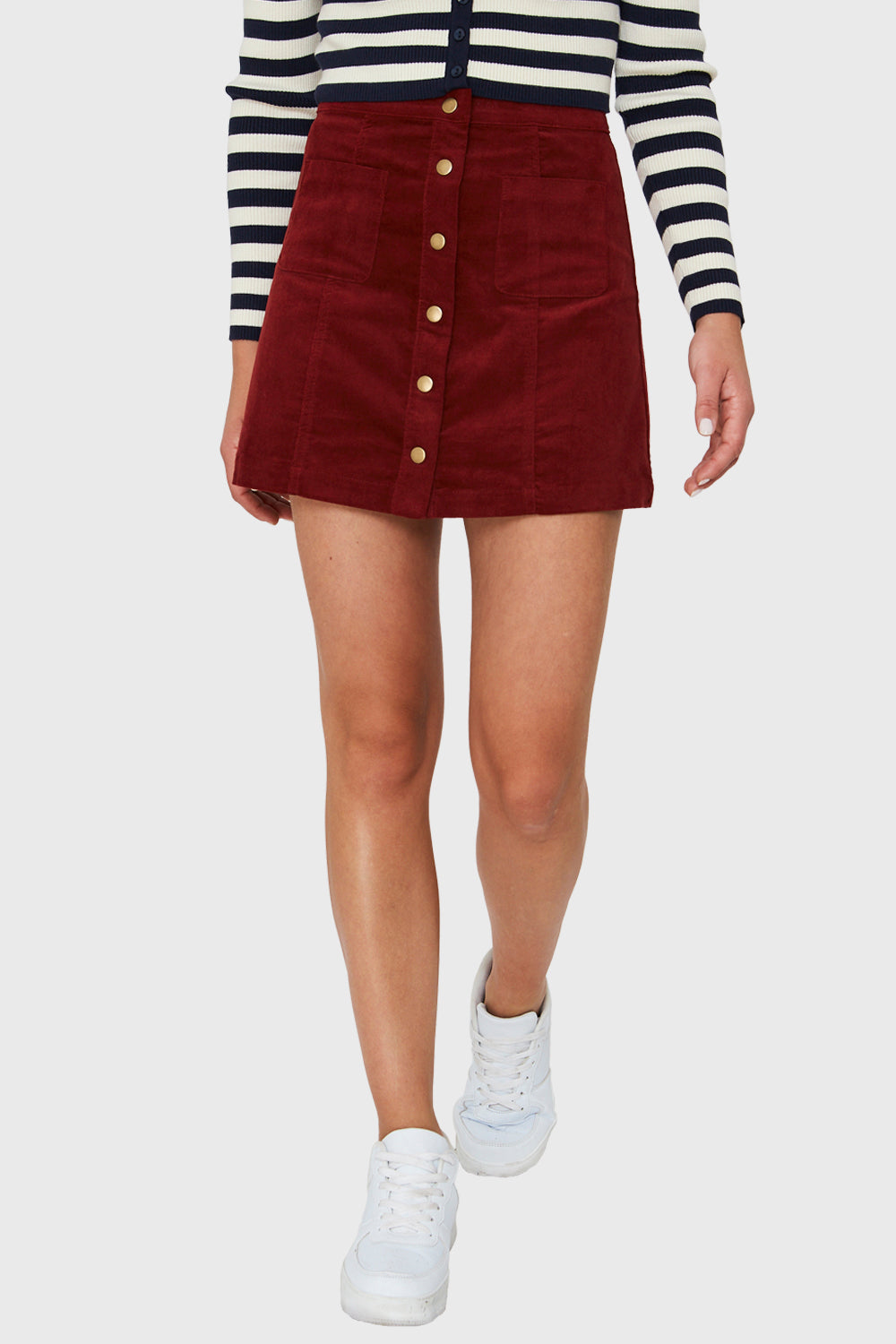 Características: Falda corta tipo cotelé. Bolsillos funcionales delanteros. Broches frontales de ajustes.