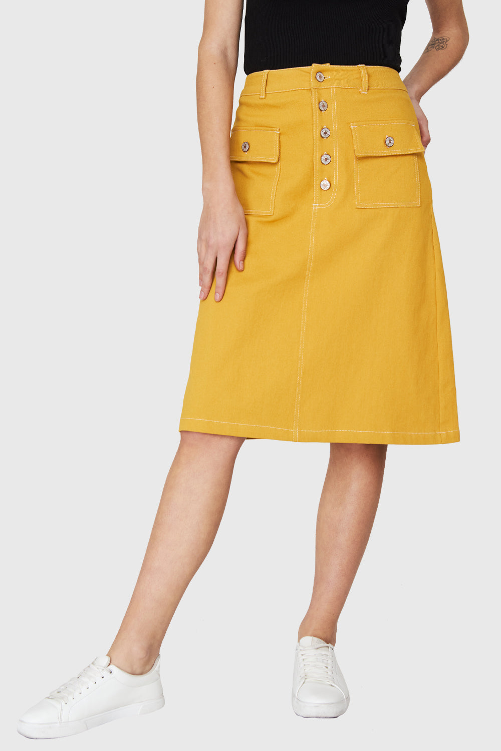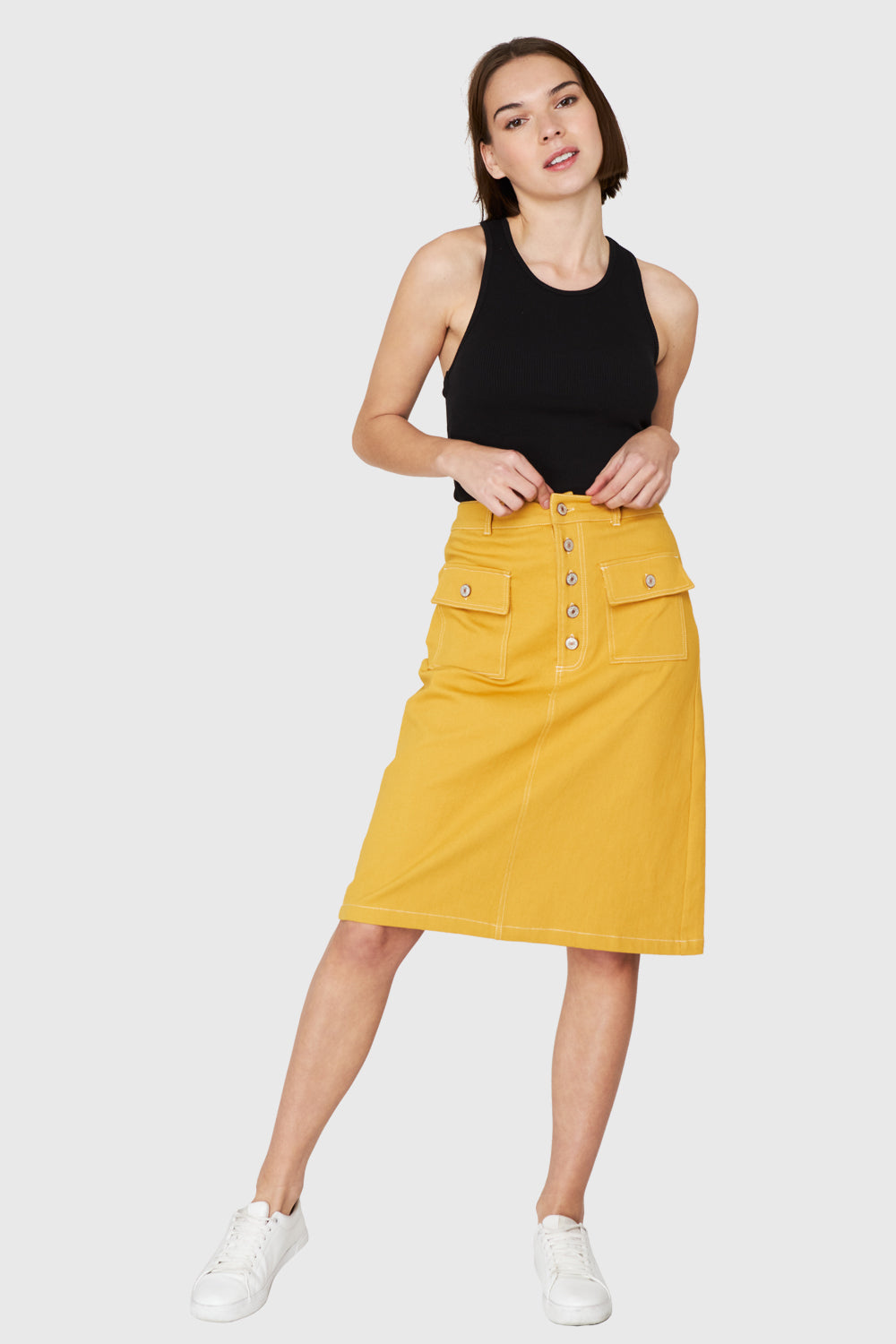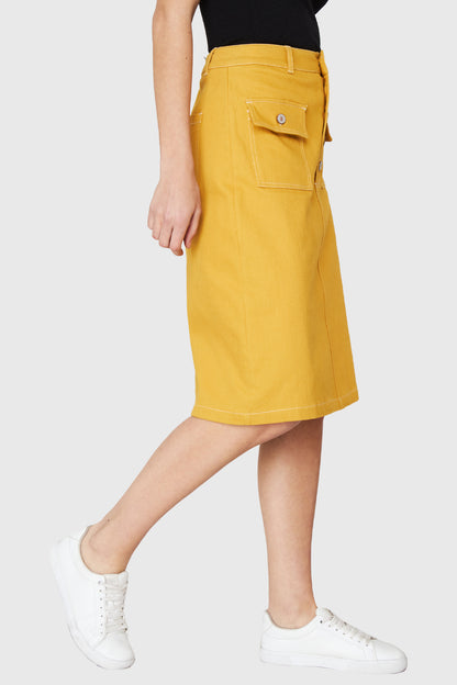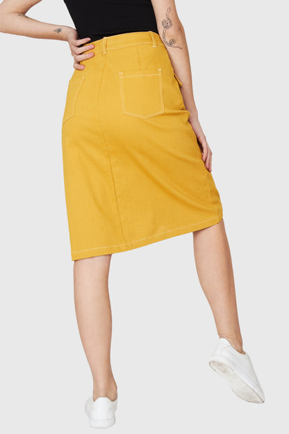 Falda Midi Bolsillos Amarillo