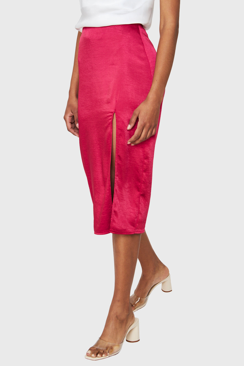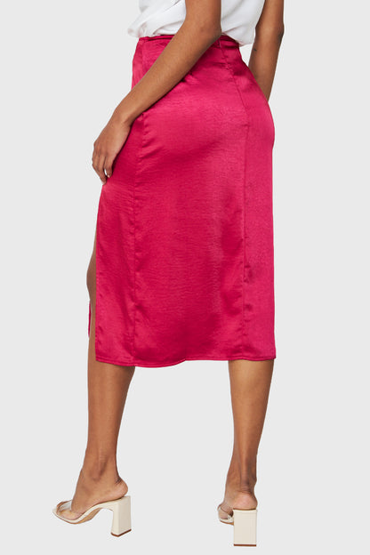 Falda Midi Tipo Satín Fucsia