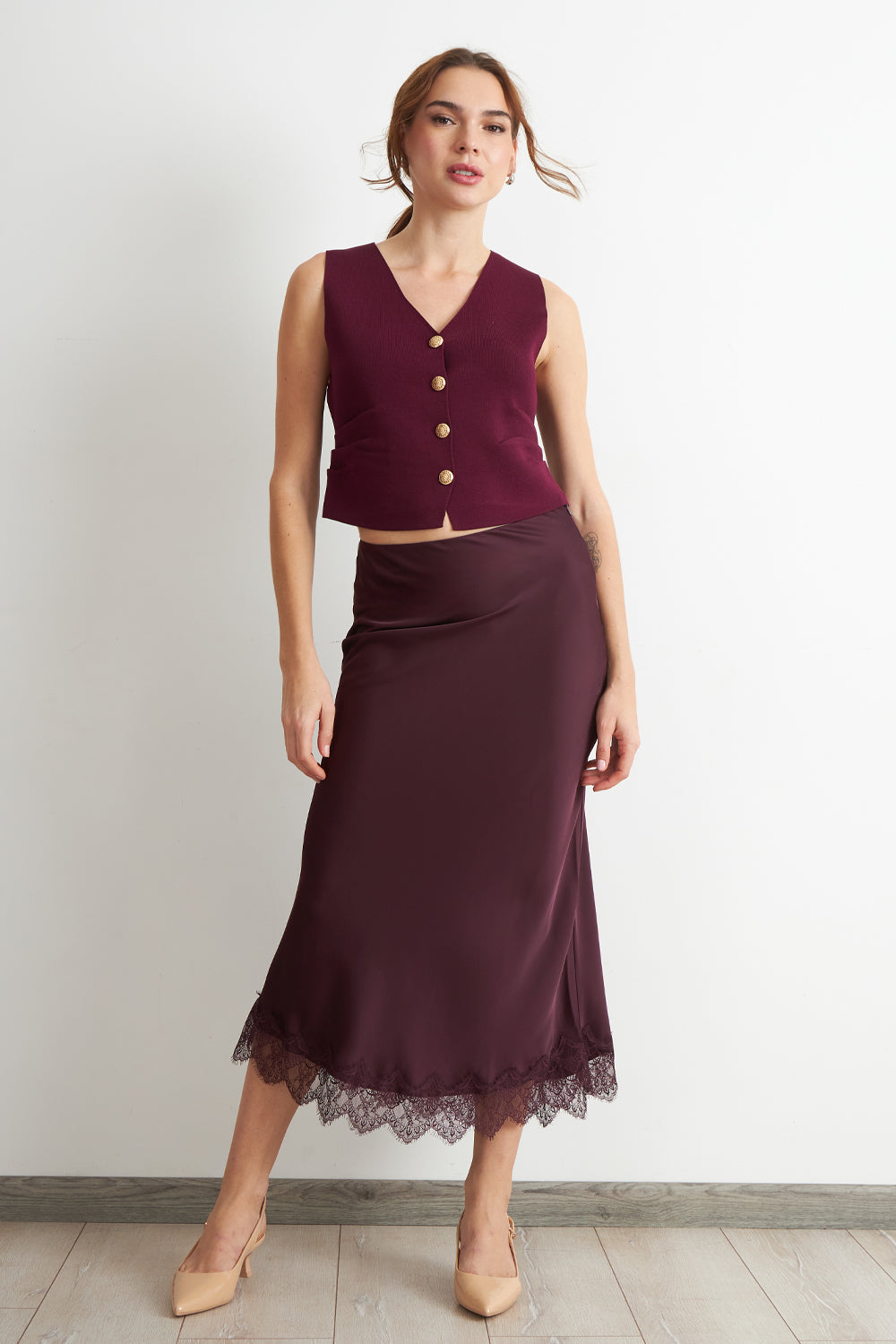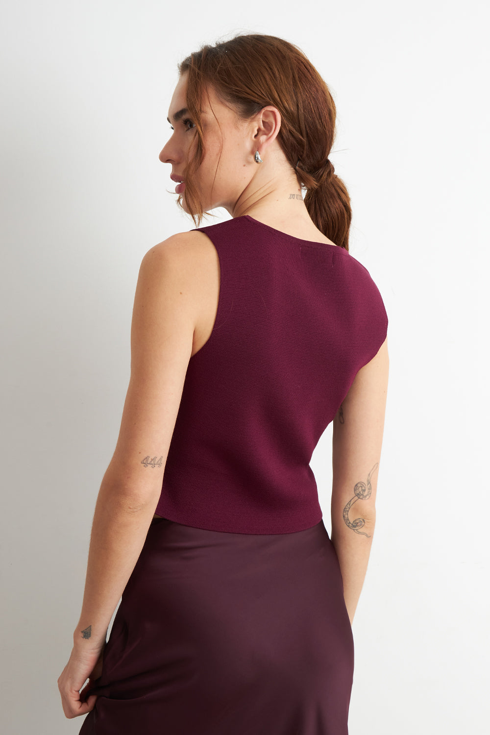 Características: Gilet de hilo con escote en V. Cuatro botones dorados funcionales para su ajuste.