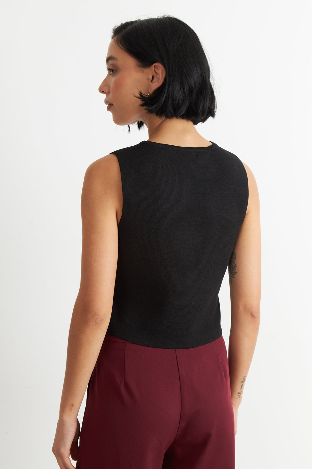 Características: Gilet de hilo con escote en V. Cuatro botones dorados funcionales para su ajuste.