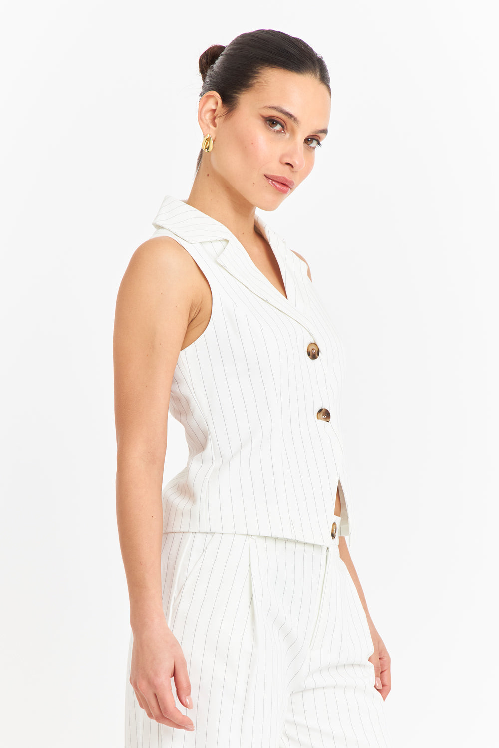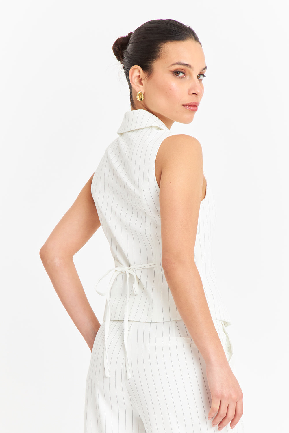 Características: Gilet con diseño de rayas diplomáticas y botones frontales de ajuste. Escote en V.