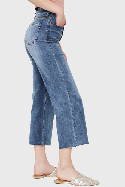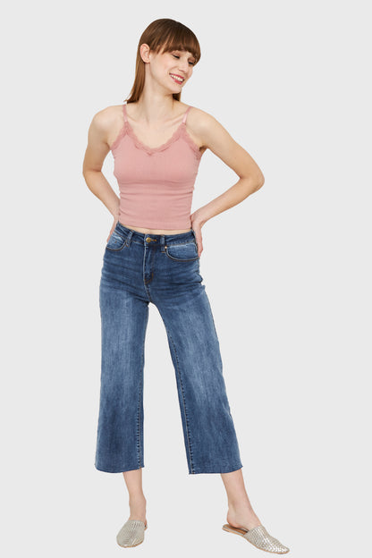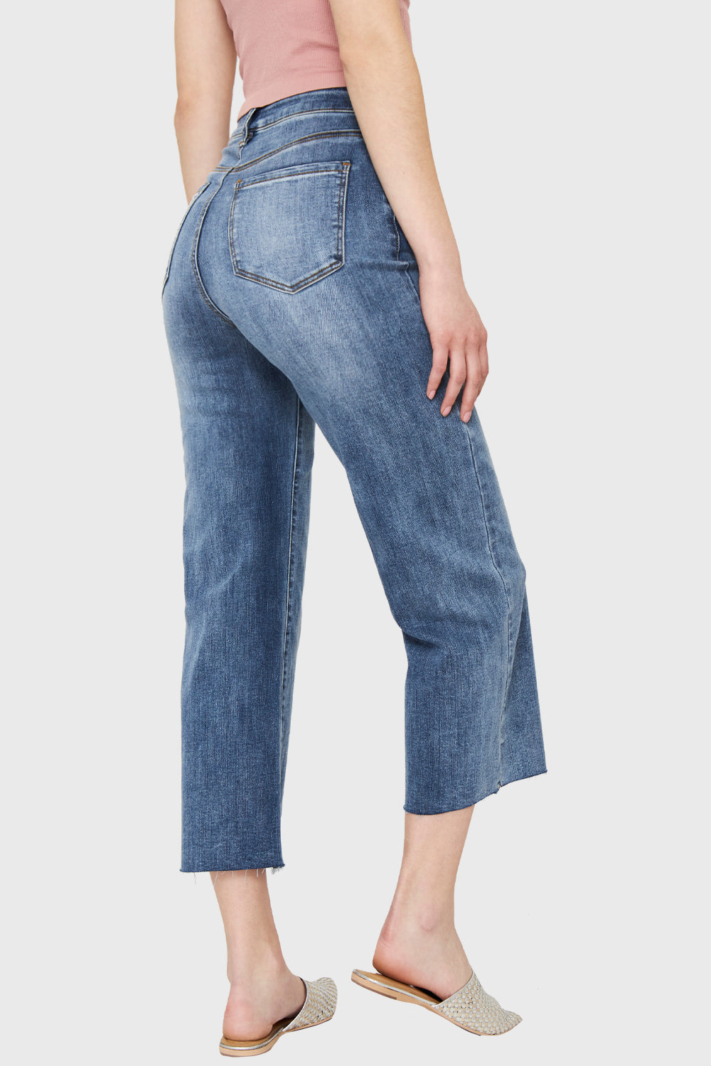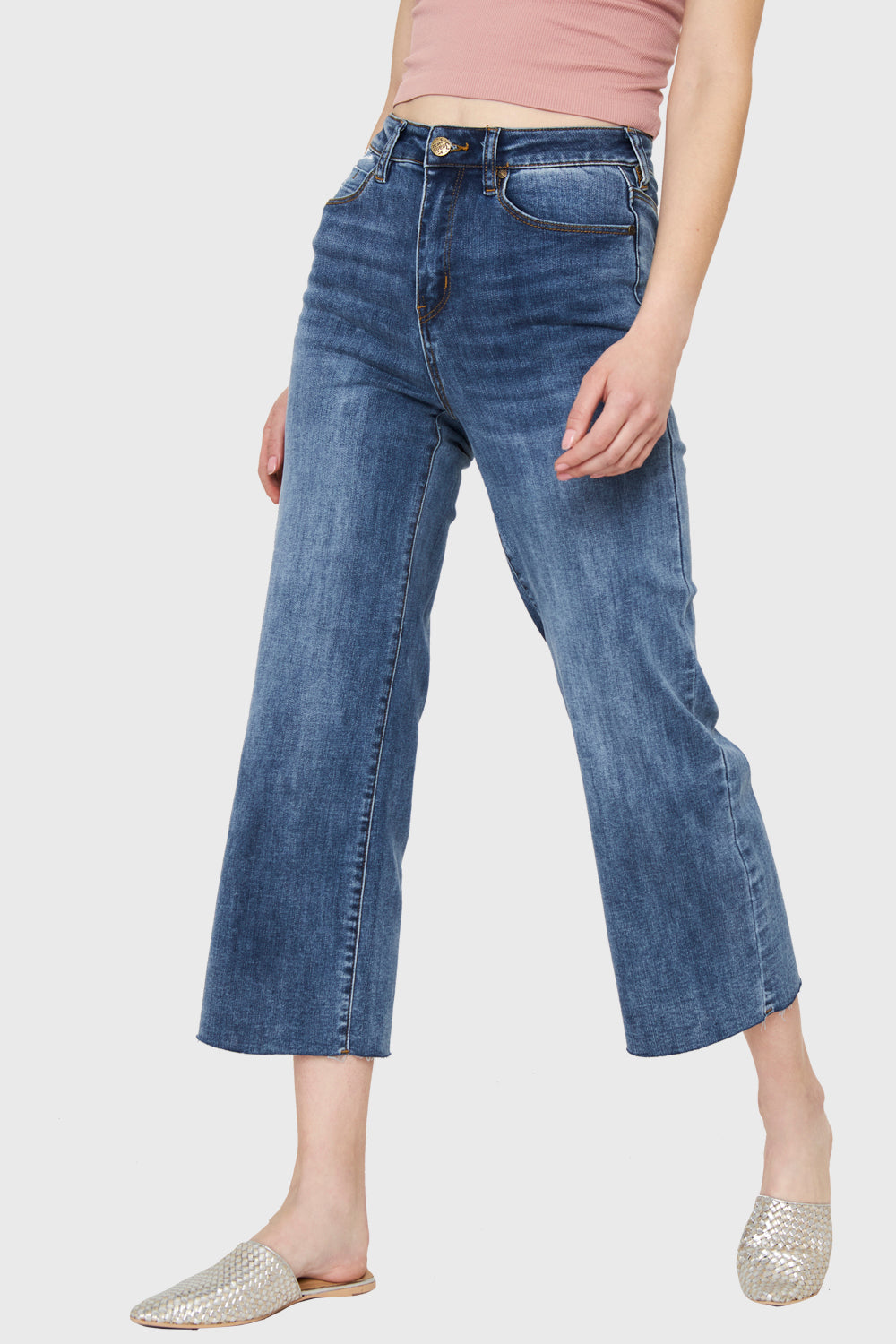 Características: Jeans tipo culotte. Todos sus bolsillos son funcionales. Presillas en la pretina. Botón y cierre de ajuste. Elasticado.