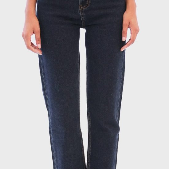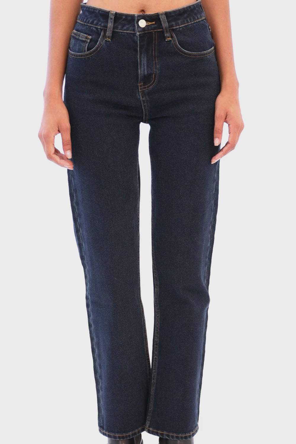Características: Jeans rectos a la cintura. Bolsillos funcionales delanteros y traseros. Cierre y botón de ajuste.