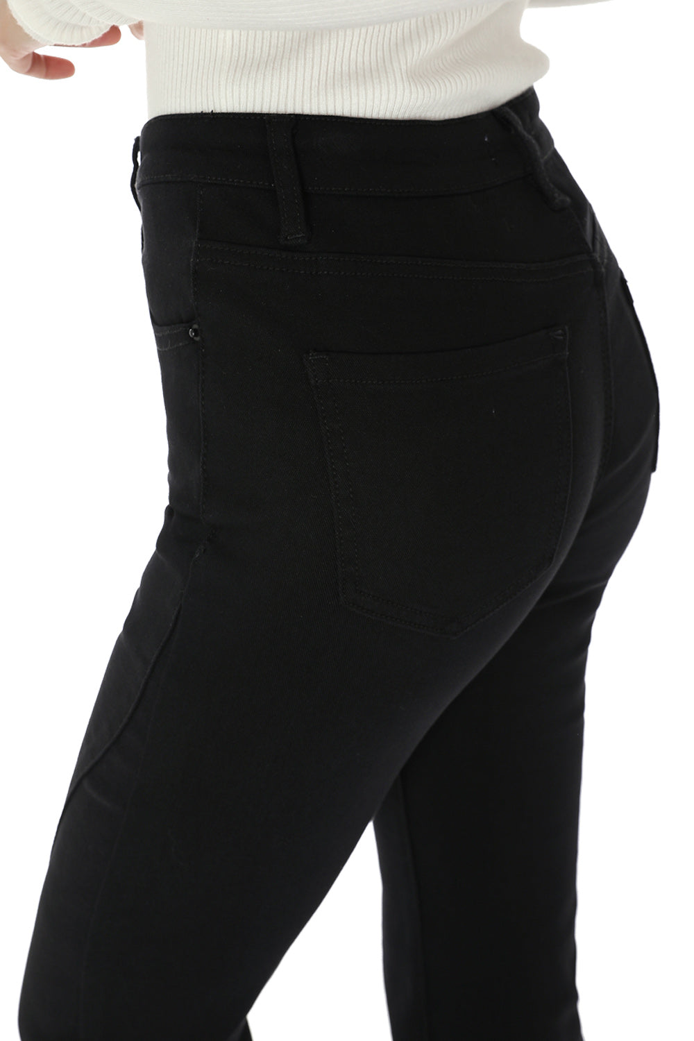 Características: Jeans recto detalle costura en piernas. Tiro medio. Bolsillos frontales y traseros. Botón y cierre de ajuste frontal.
