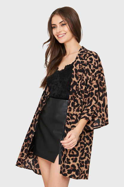 Características: Kimono con estampado animal print de leopardo. Mangas 3/4. Viene en dos tallas S/M y M/L.