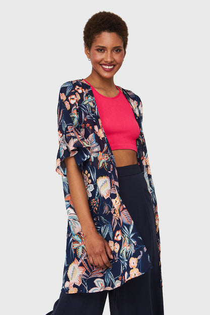 Kimono Gasa Flores Azul Marino