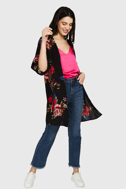 Características: Kimono con estampado de flores. Mangas corta con vuelos. Viene en dos tallas S/M y M/L.