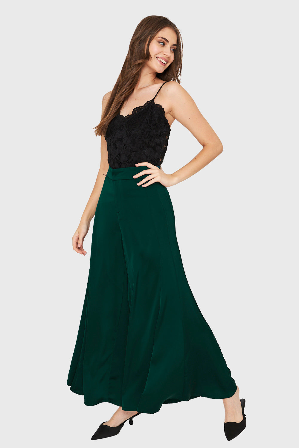 Maxi Palazzo Tipo Satín Verde