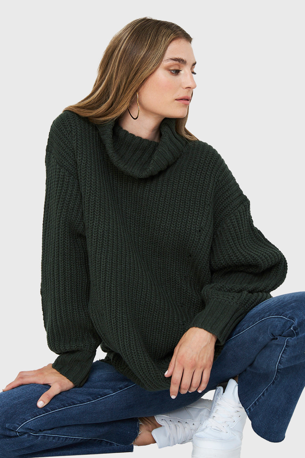 Características: Maxi sweater cuello alto. Pretina en puños y basta.
