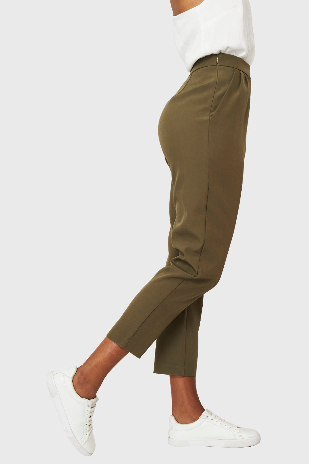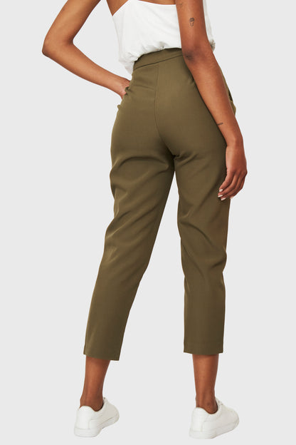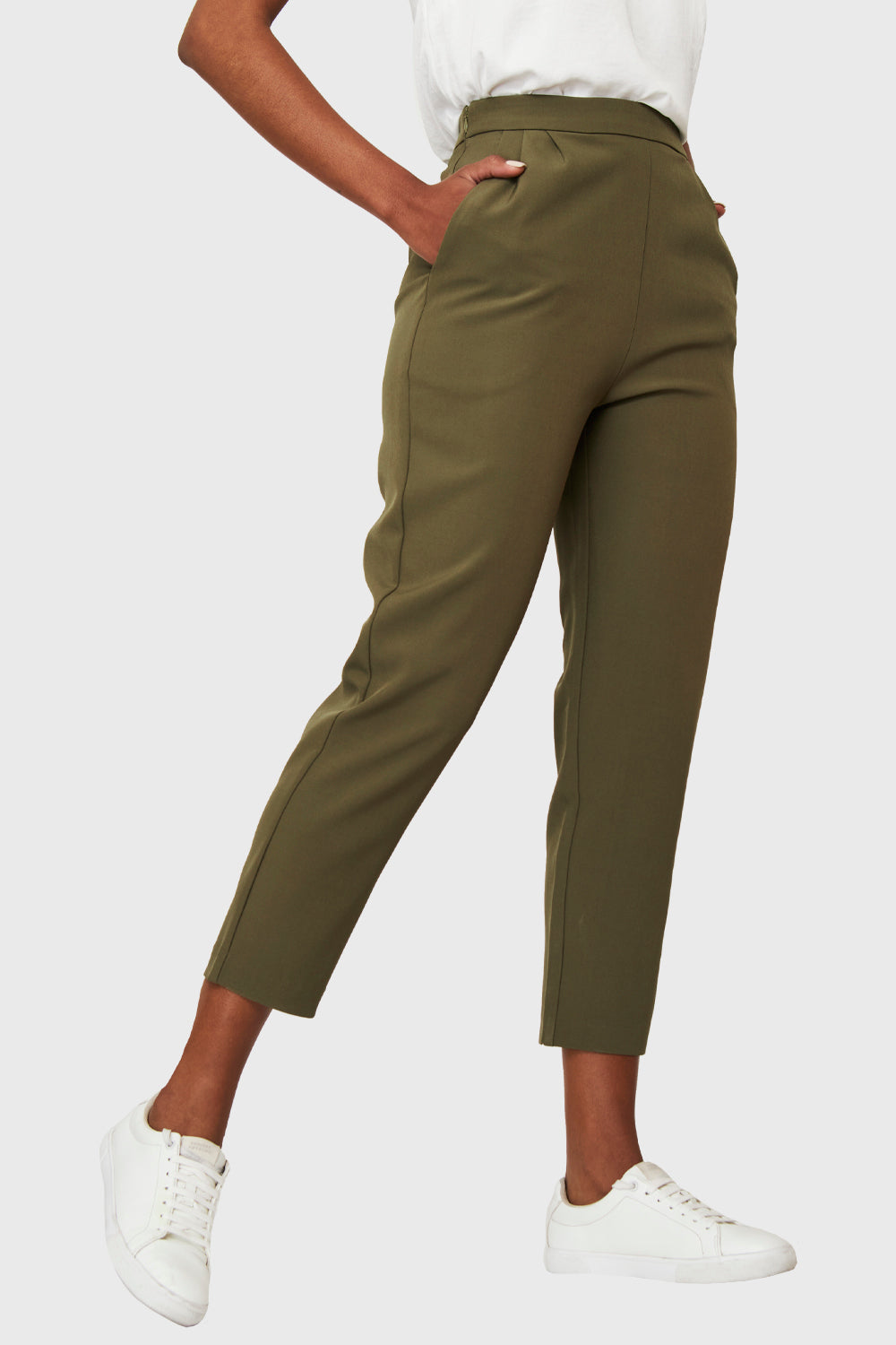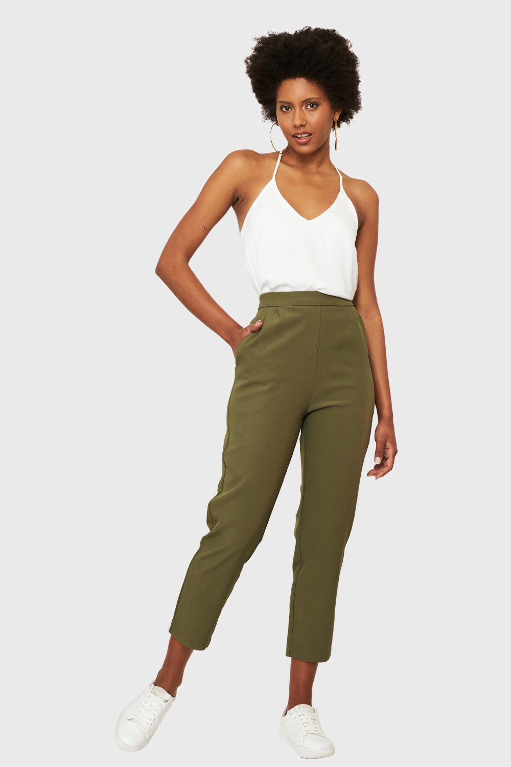 Características: Pantalón tiro alto. Pierna corte recto ajustado. Bolsillos funcionales. Cierre invisible y gancho de ajuste por el costado.