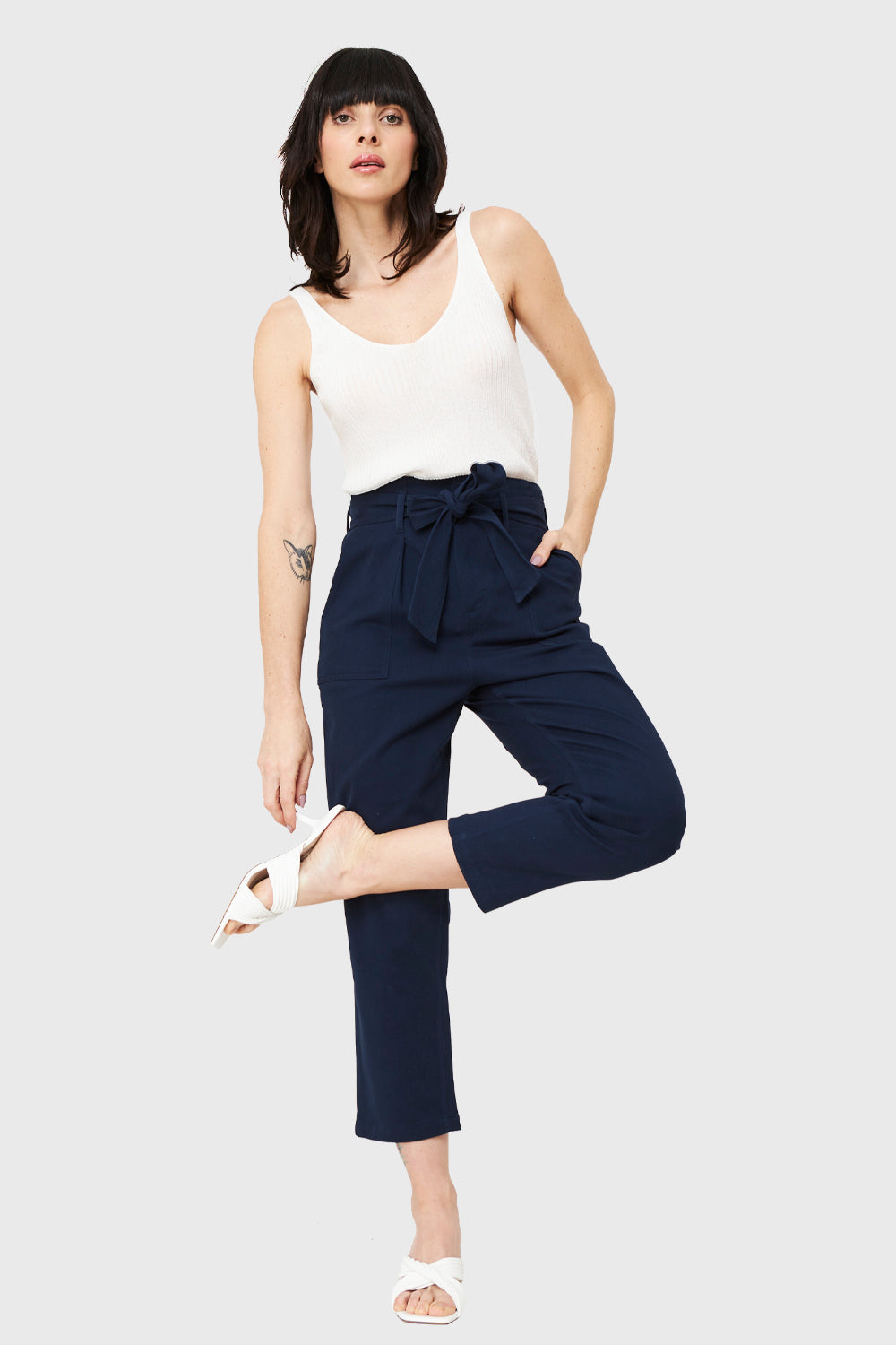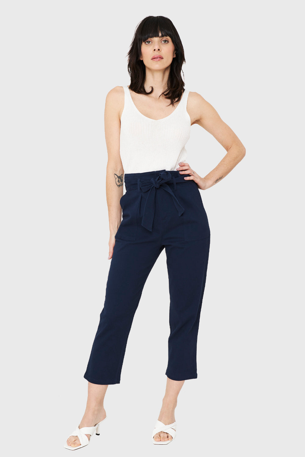 Características: Pantalón tiro alto con bolsillos estilo cargo. Cierre y dos broches de ajuste. Presillas en la pretina para lazo de ajuste.