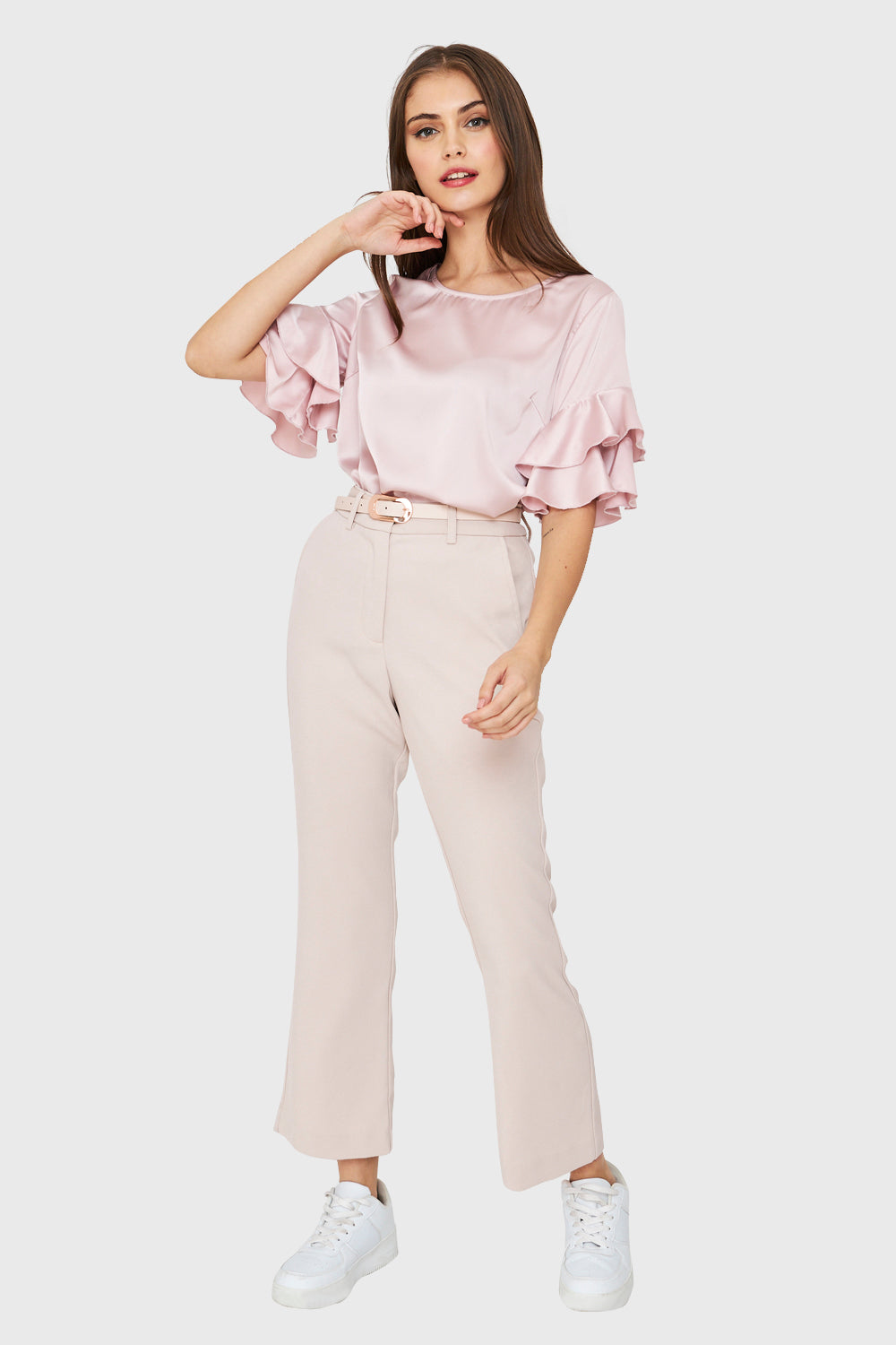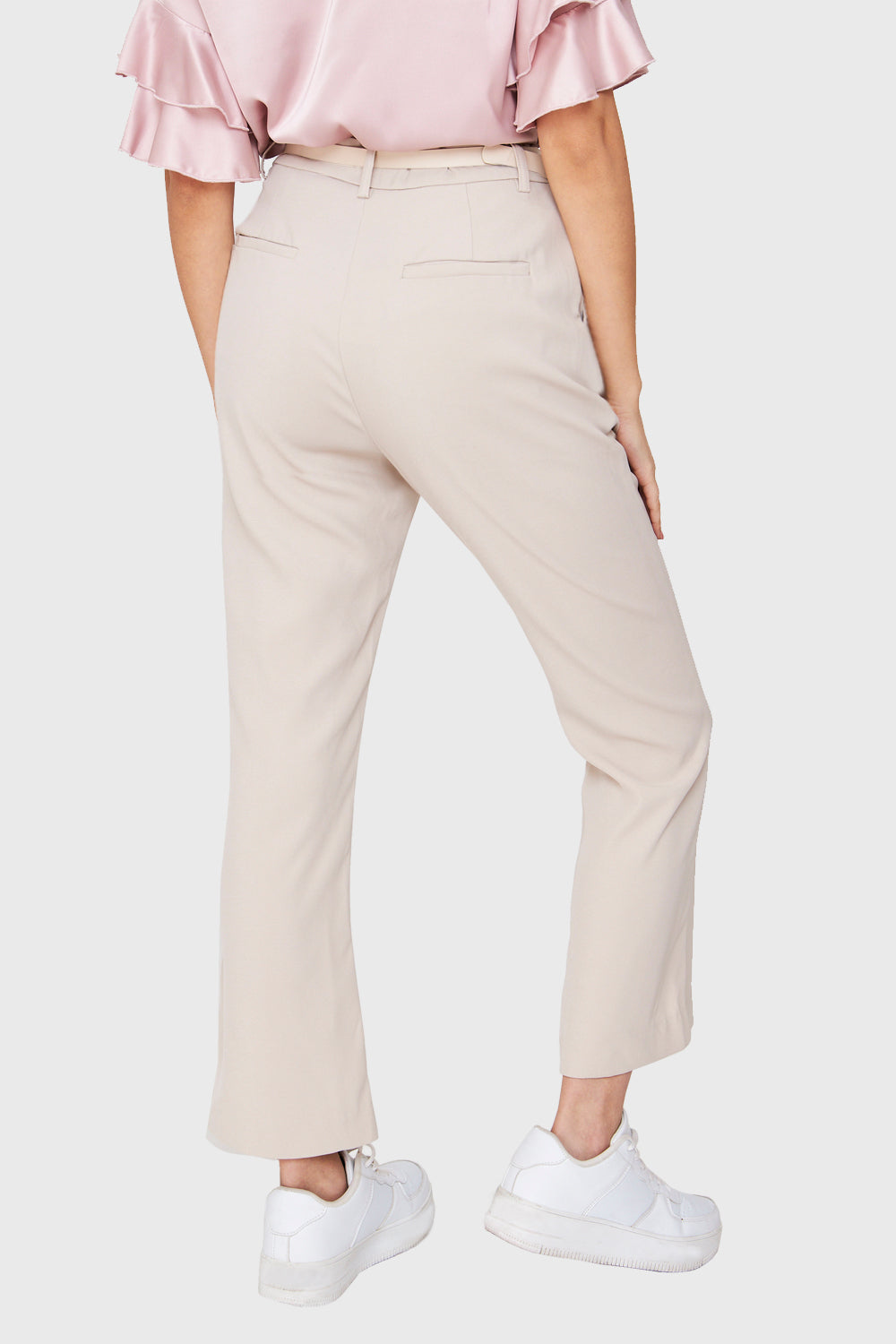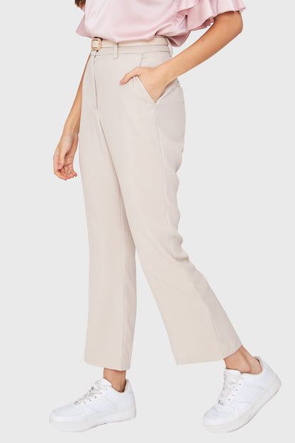 Características: Pantalón clásico, pierna recta semi ancha al final. Tiene cierre, botón y broches interiores invisibles. Presillas en pretina para el cinturón (lo incluye) y bolsillos funcionales en los costados.