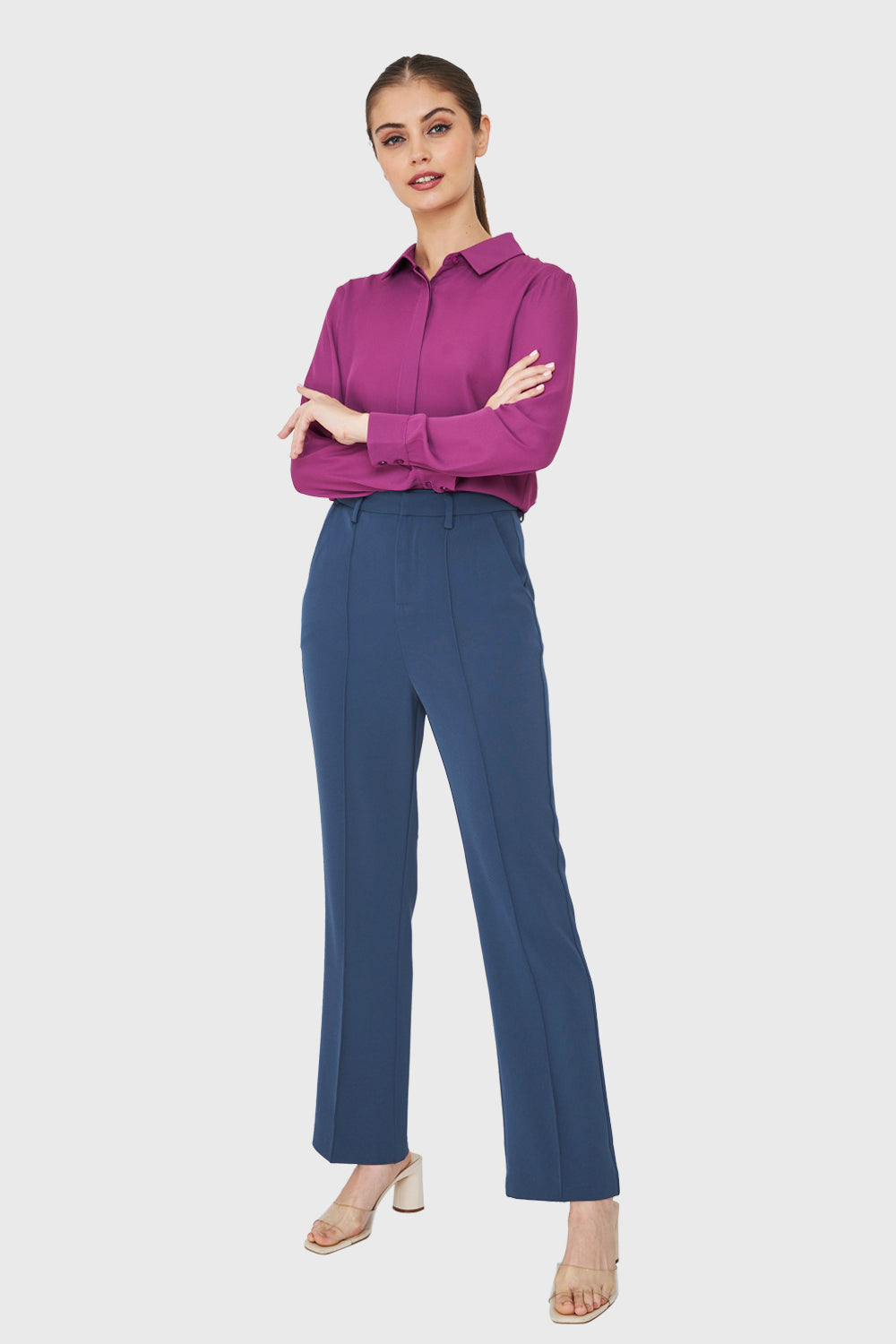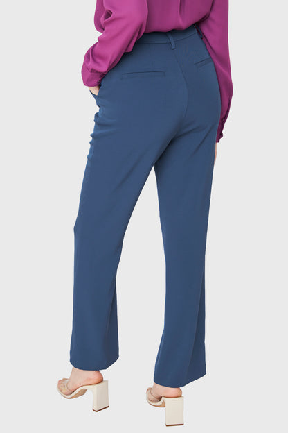 Pantalón Con Costuras Frontales Recto Azul Acero