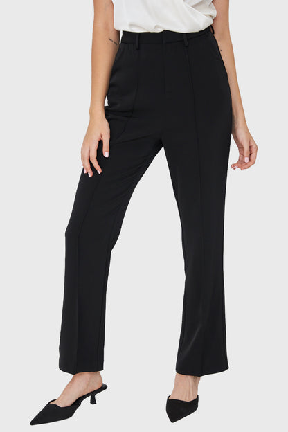 Pantalón Con Costuras Frontales Recto Negro