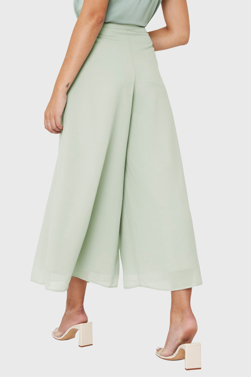 Características: Pantalón culotte con tela brillante. Cierre invisible y gancho de ajuste al costado. Posee forro. Sin bolsillos.