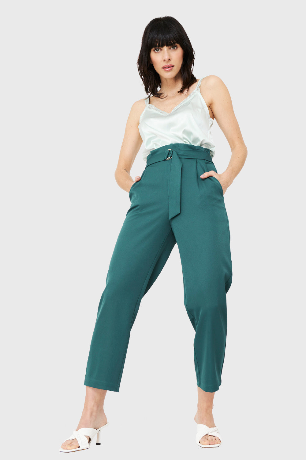 Características: Pantalón tiro alto, bolsillos delanteros funcionales. Elástico en la parte posterior de la cintura. Cierre, botón y broche de ajuste. Posee lazo de ajuste con hebilla.