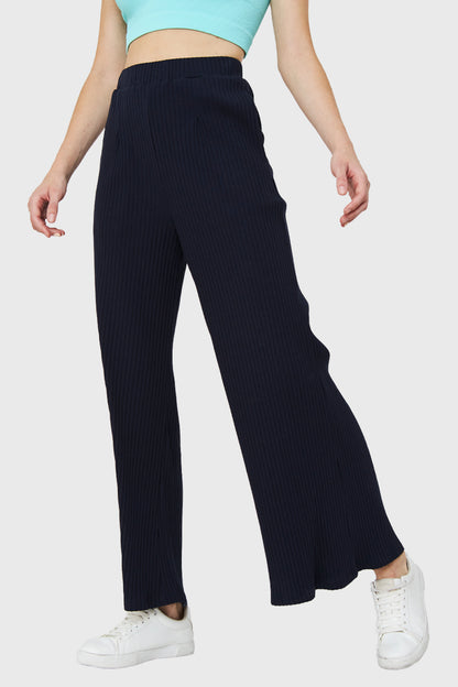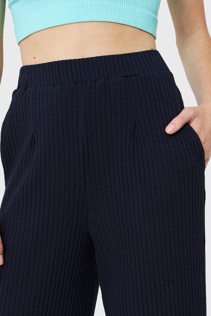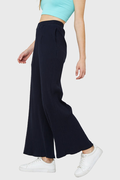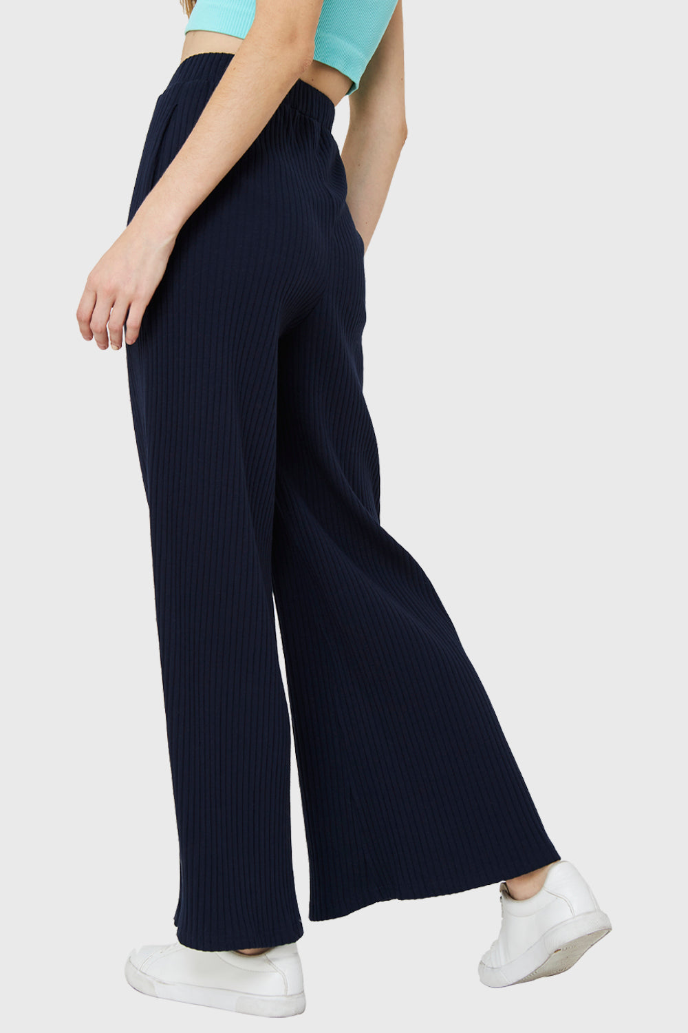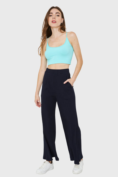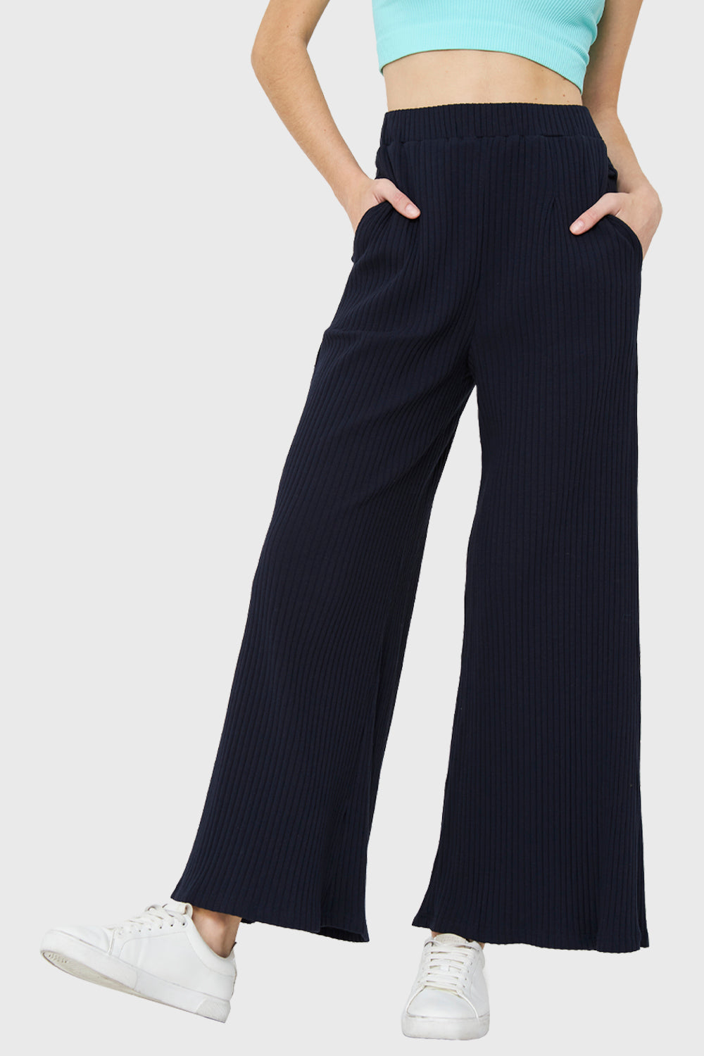 Características: Pantalón palazzo acanalado cómodo. Pretina elasticada en la cintura y bolsillos laterales.