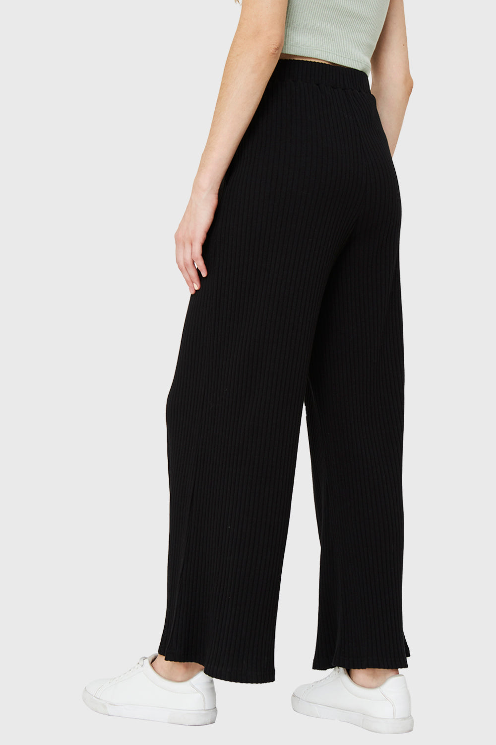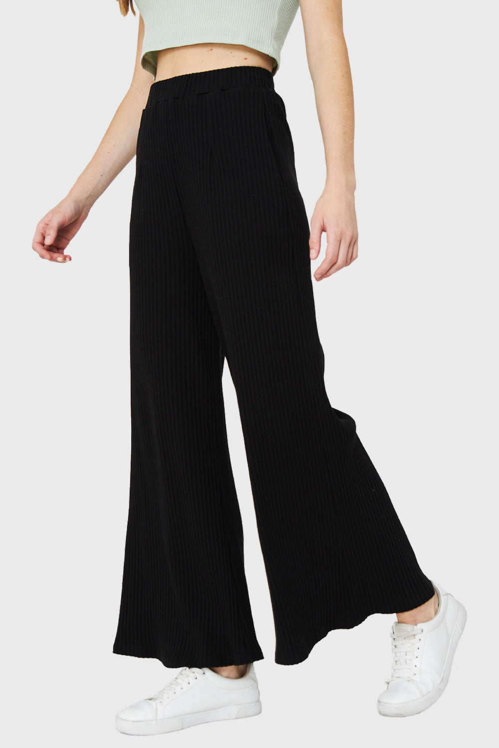 Características: Pantalón palazzo acanalado cómodo. Pretina elasticada en la cintura y bolsillos laterales.