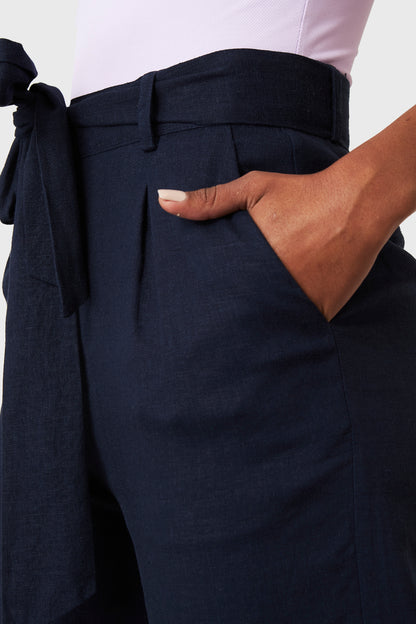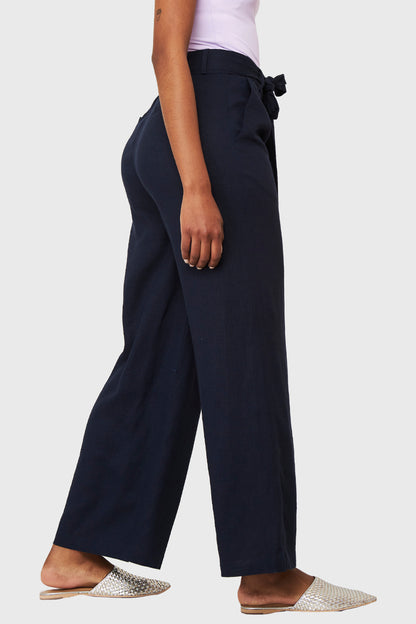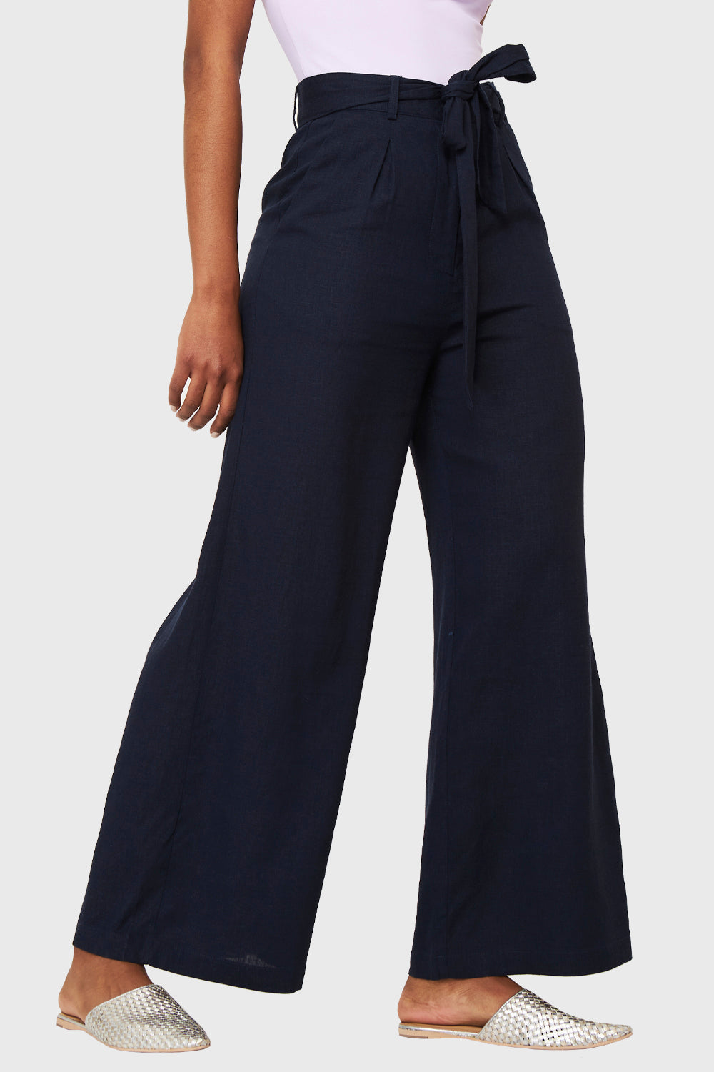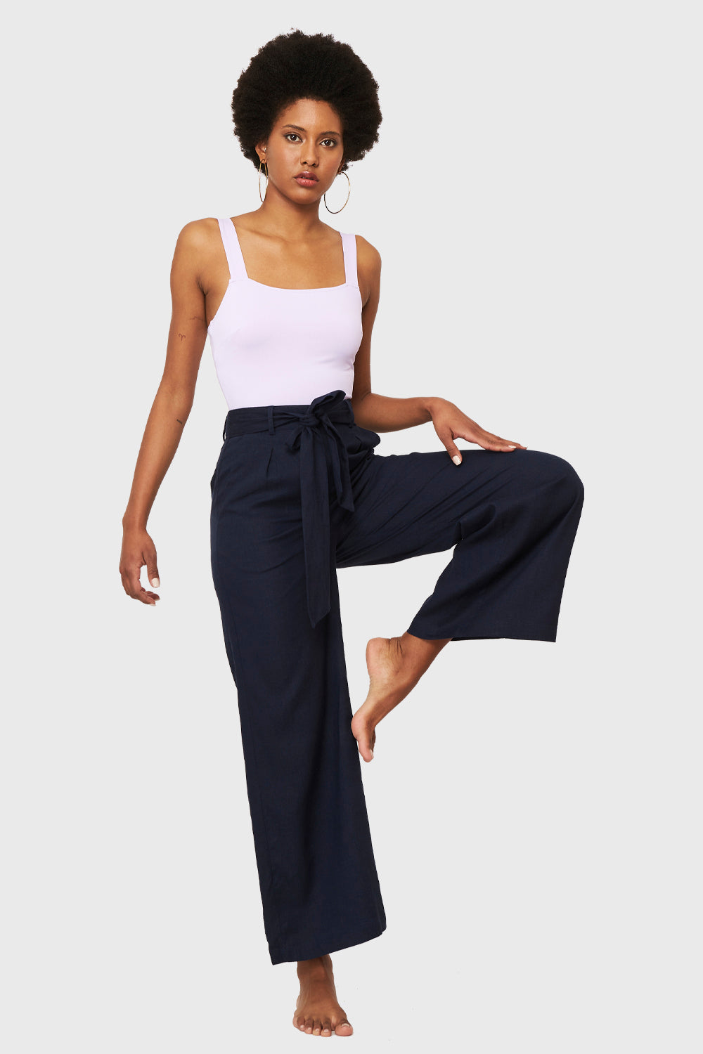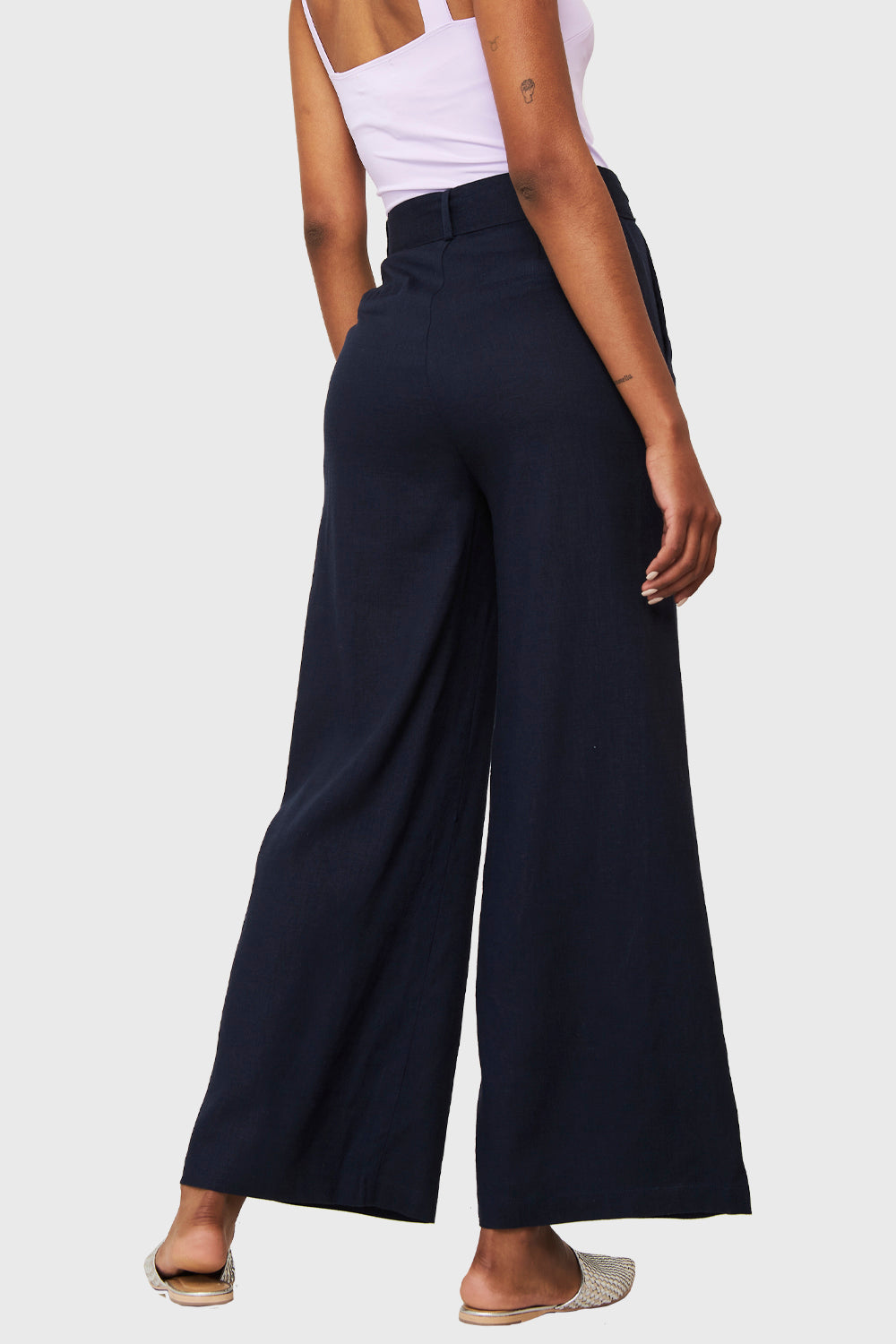 Características: Pantalón palazzo con bolsillos funcionales. Tiro alto. Presillas en cintura para el lazo de ajuste. Gancho y cierre de ajuste.
