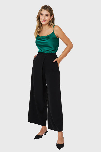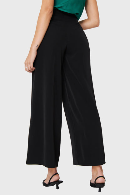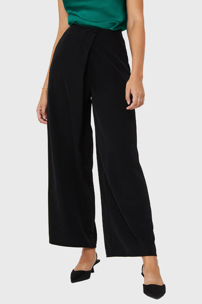 Características: Pantalón palazzo tiro cruzado. Botón decorativo delantero. Cierre invisible en la espalda. Bolsillos funcionales.