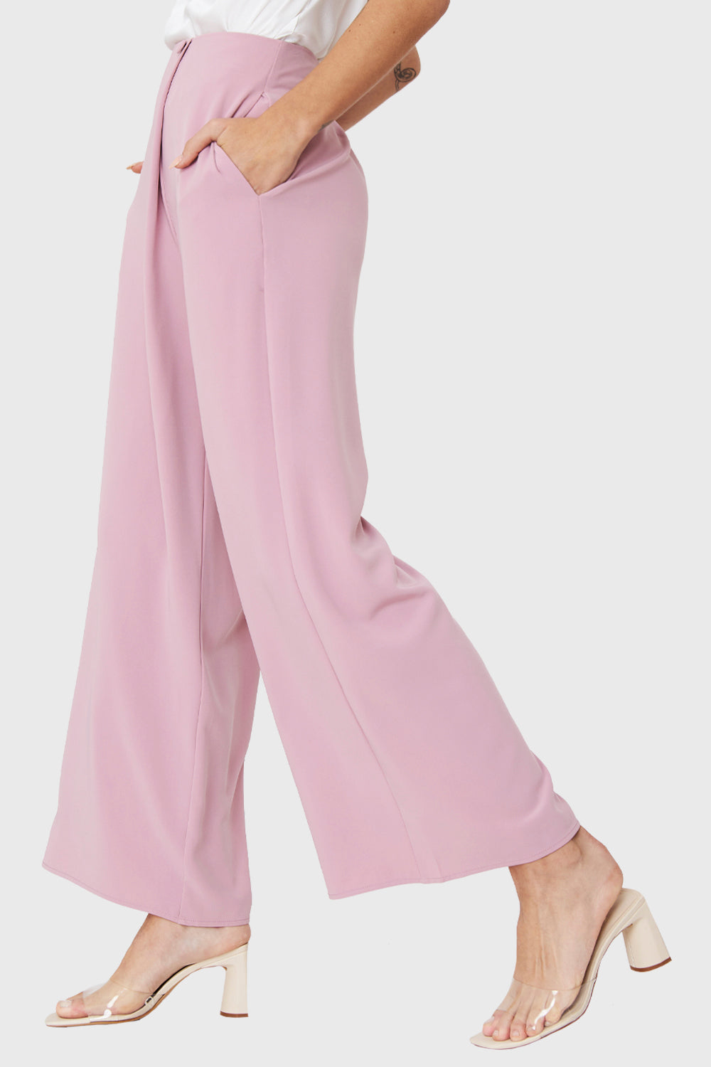 Pantalón Palazzo Botón Rosado