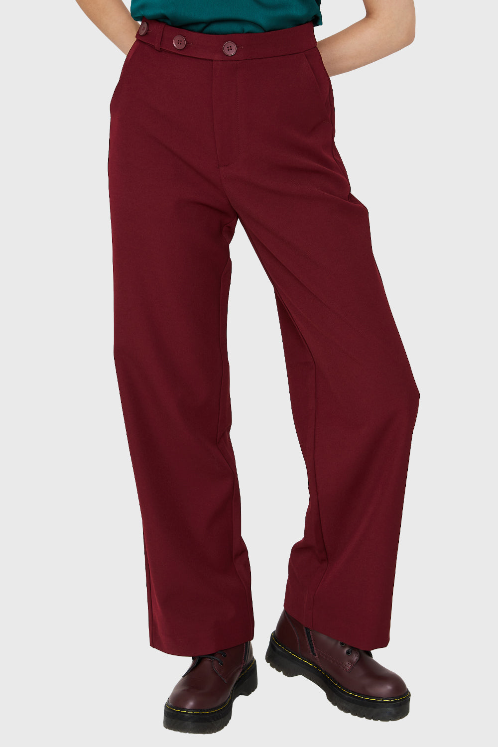 Pantalón Recto Botones Burdeos