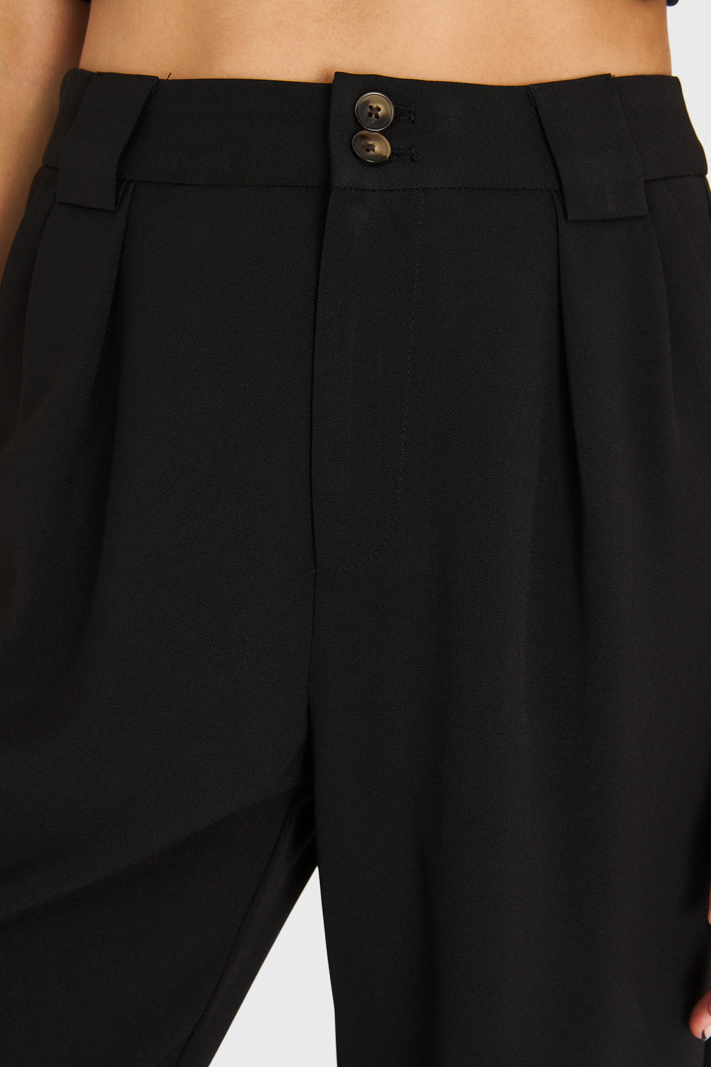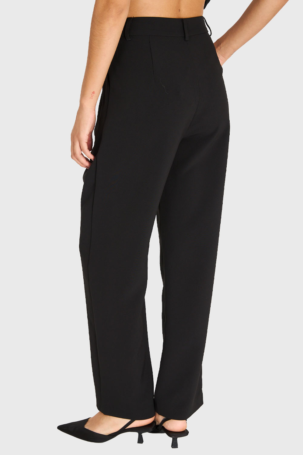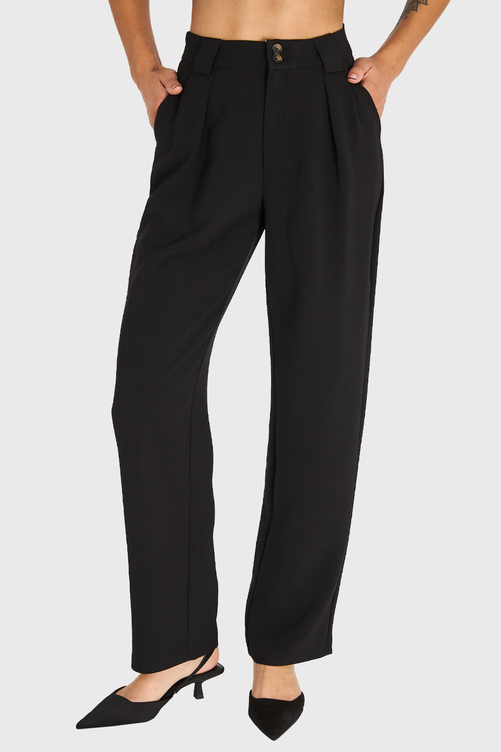 Características: Pantalón recto con bolsillos laterales. Posee presillas anchas y pinzas en la parte frontal. Tiene cierre y dos botones de ajuste.