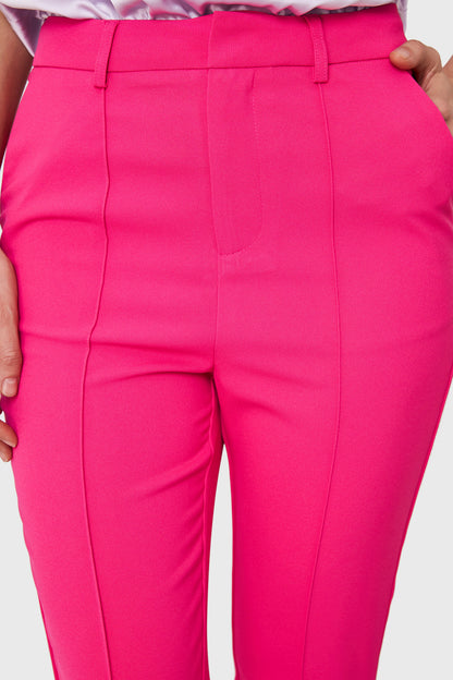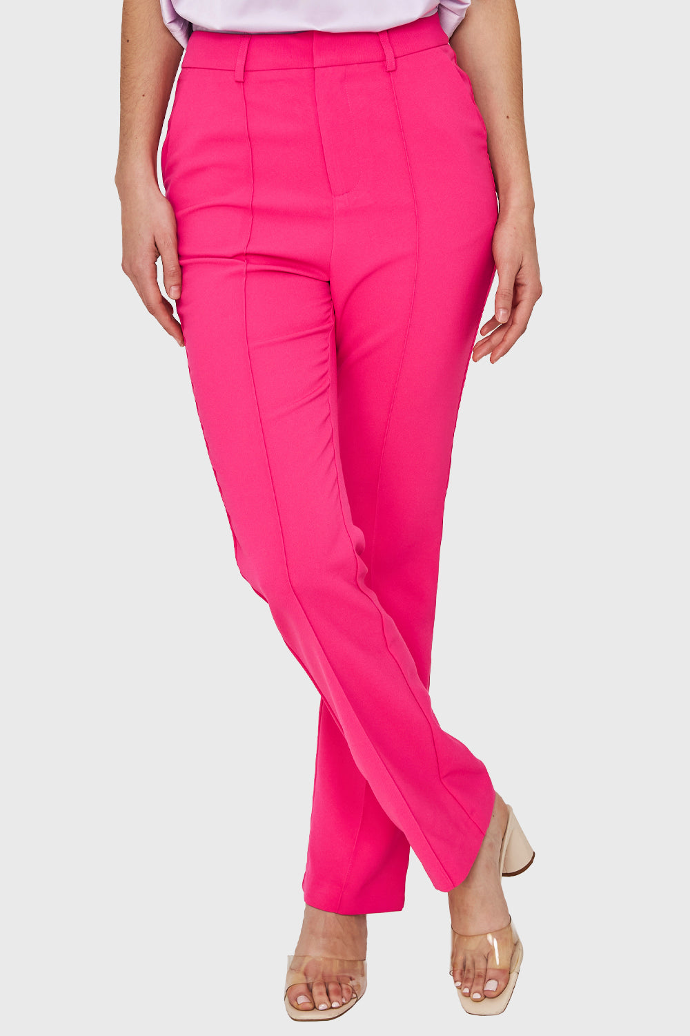 Características: Pantalón recto tiro alto con costuras frontales y bolsillos laterales. Cierre, broche y botón interno de ajuste.