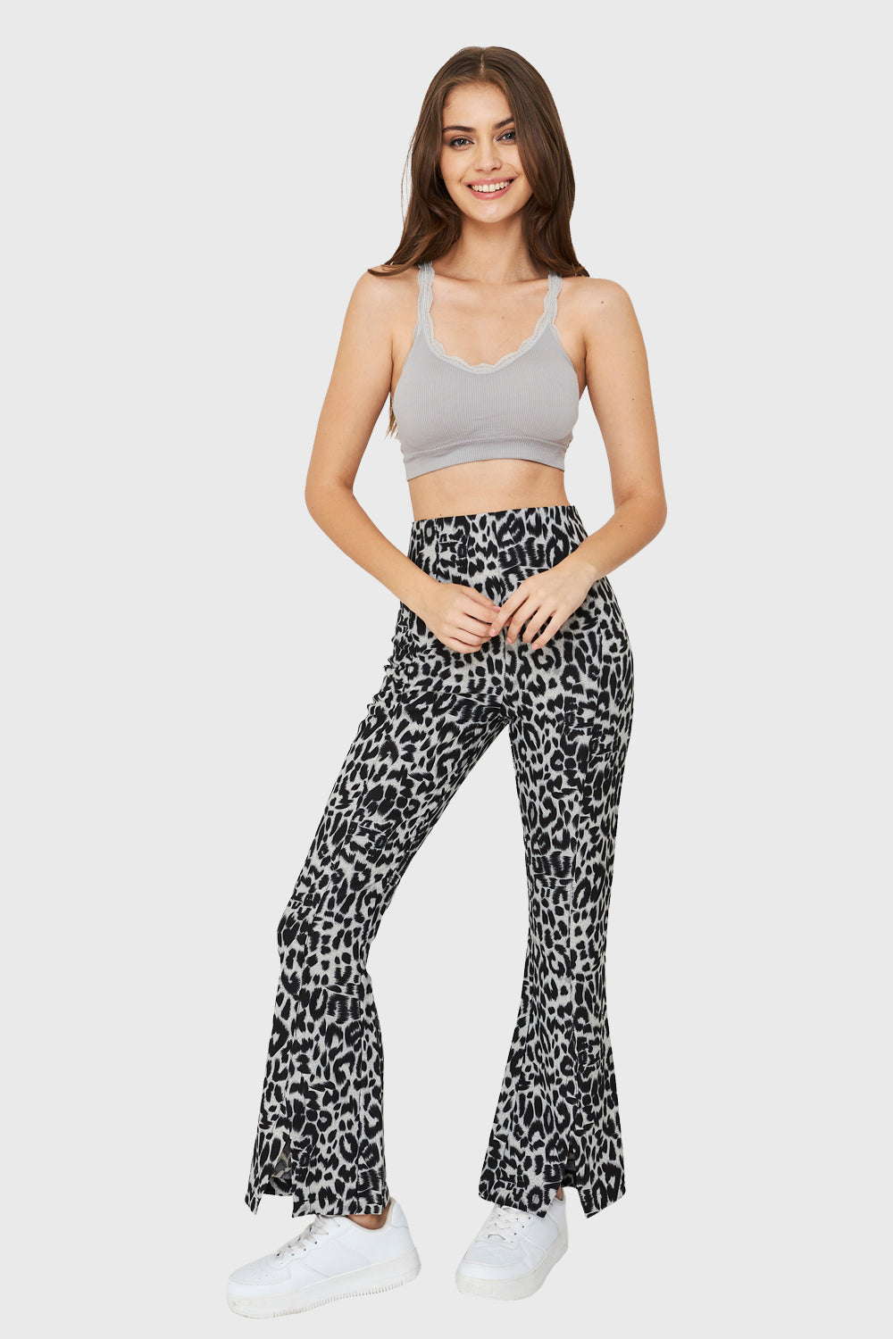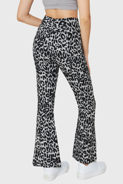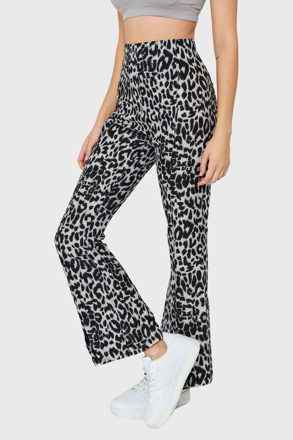 Pantalón Tajo Frontal Leopardo Gris