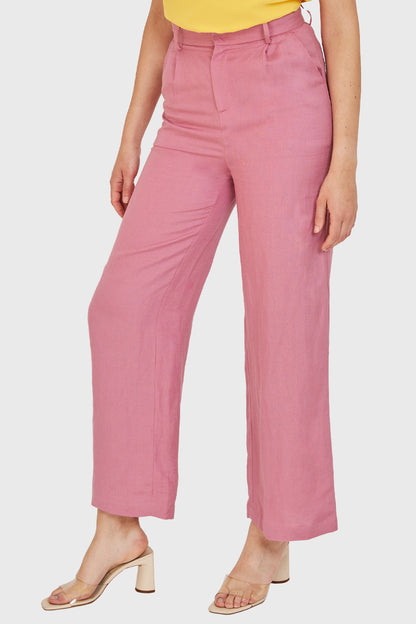 Pantalón Tipo Lino Wide Leg Rosa