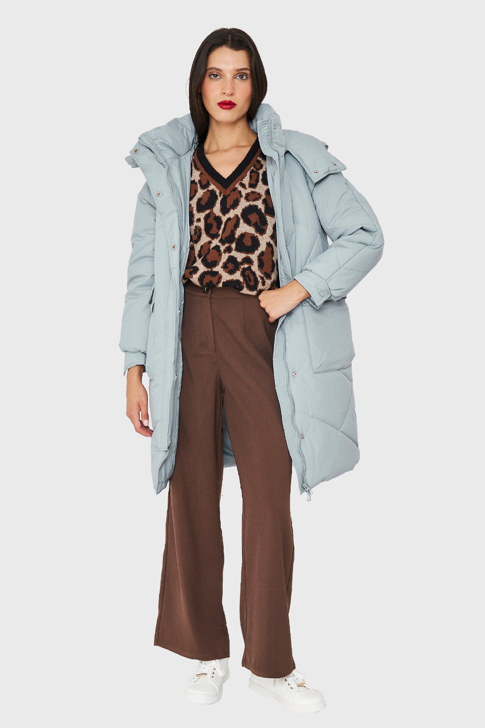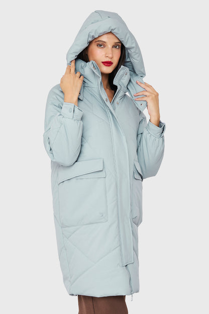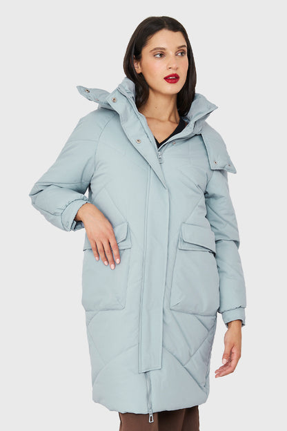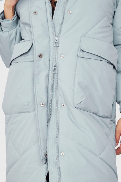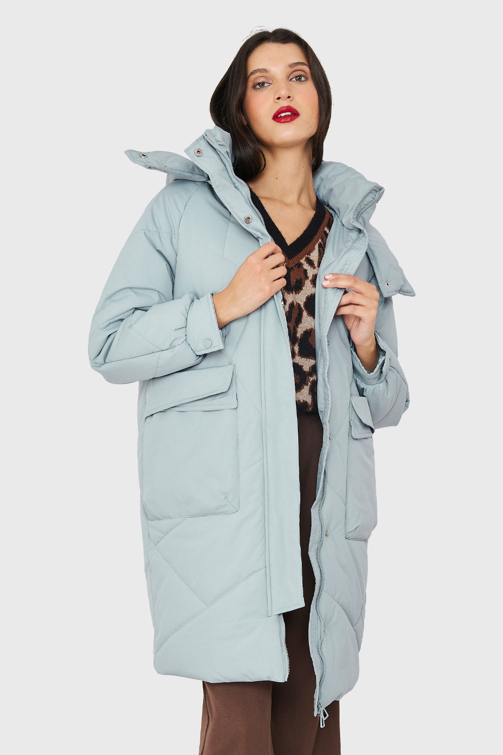 Parka Acolchada Bolsillos Grandes Celeste Pastel