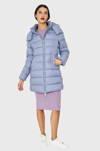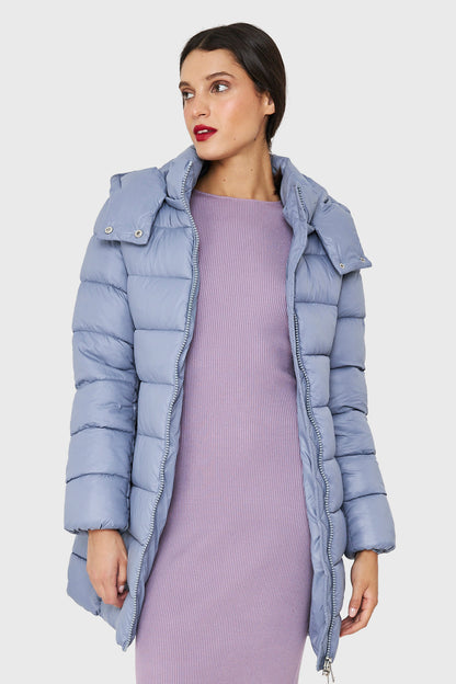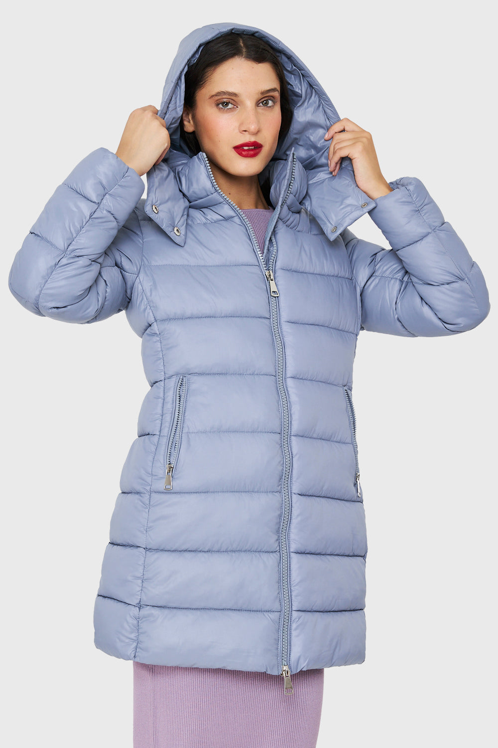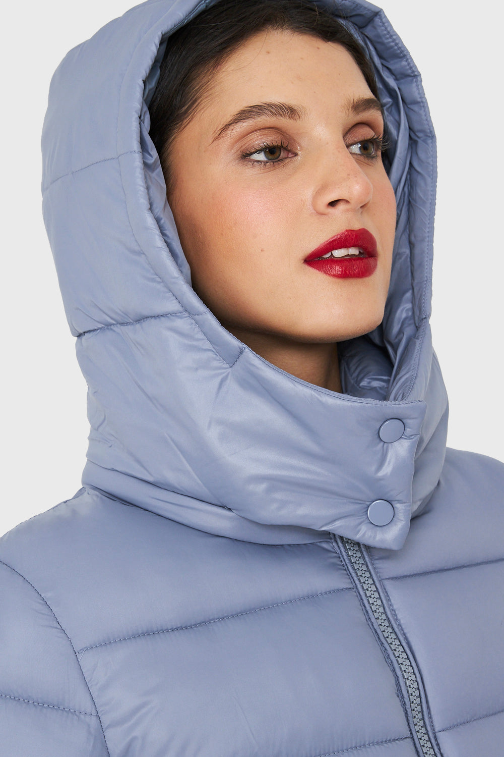 Características: Parka midi acolchada con gorro desmontable. Cierre frontal de ajuste, puño elasticado y bolsillos laterales funcionales con cierre. El gorro posee broches para ajustar en cuello.