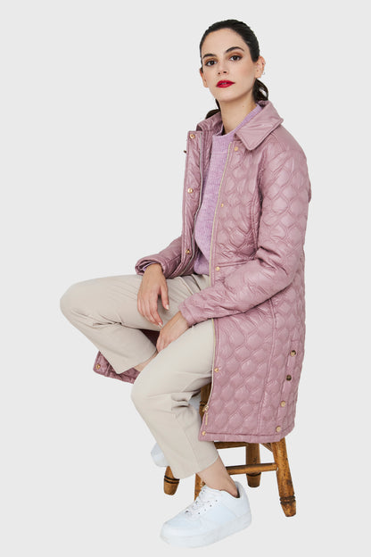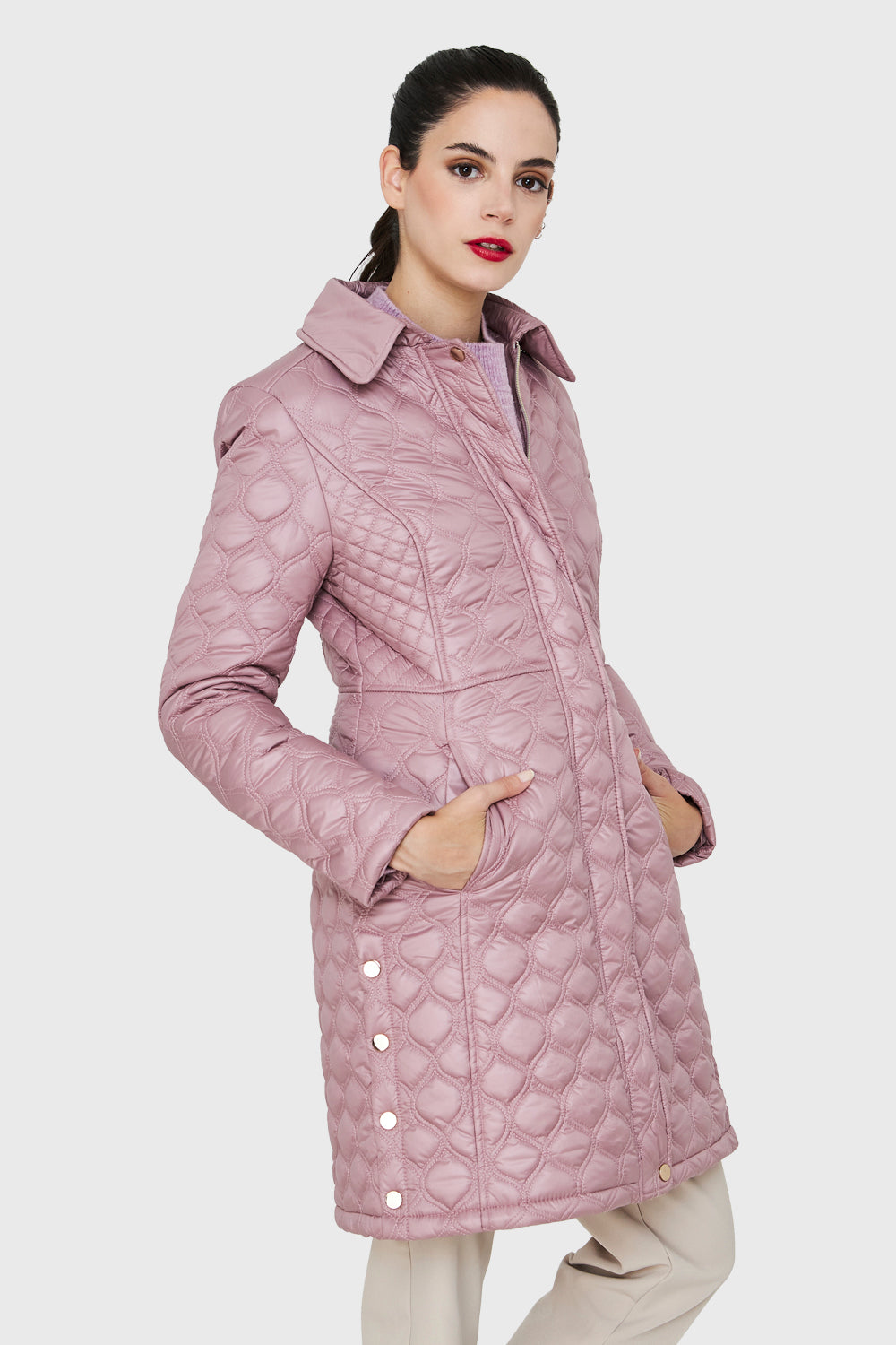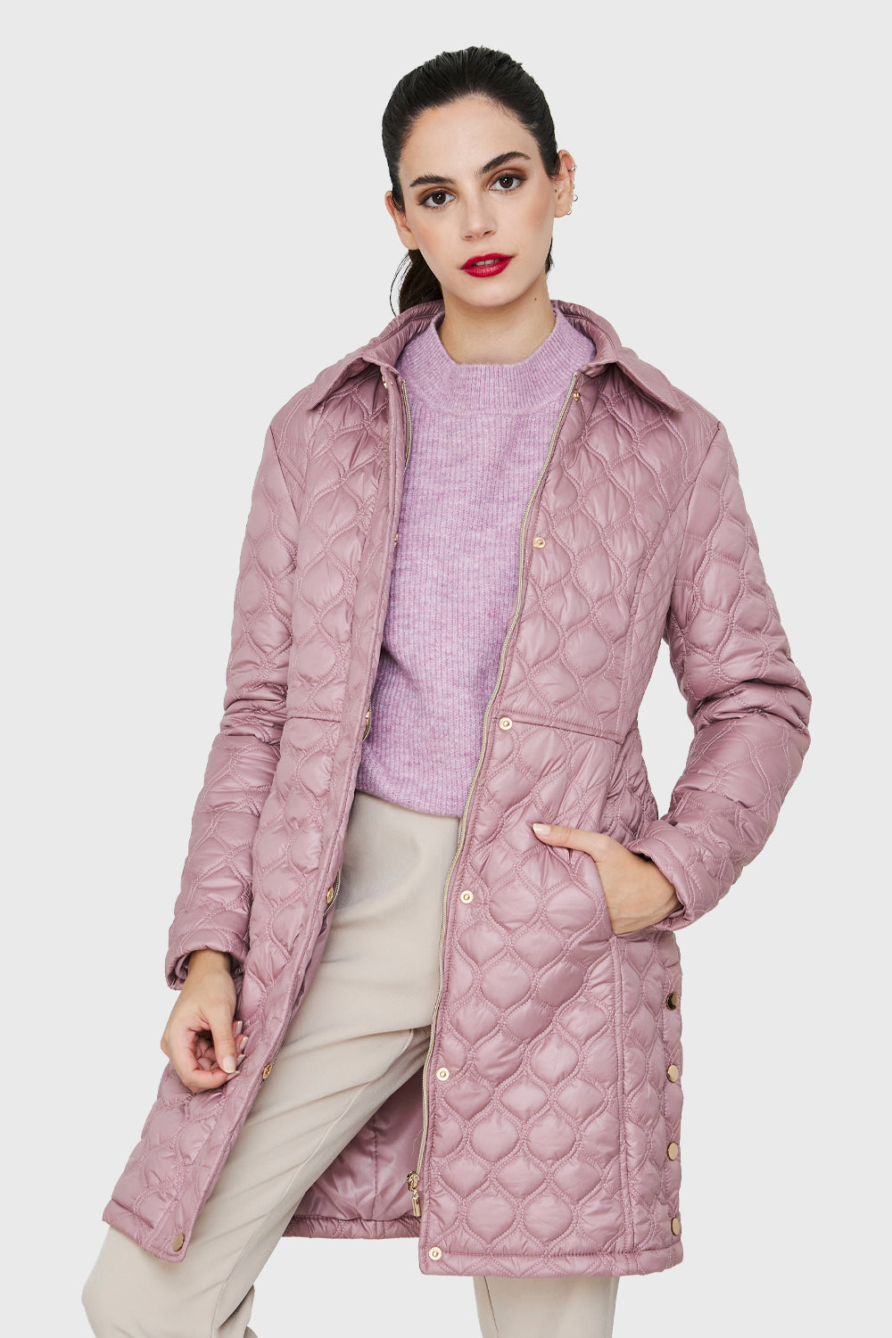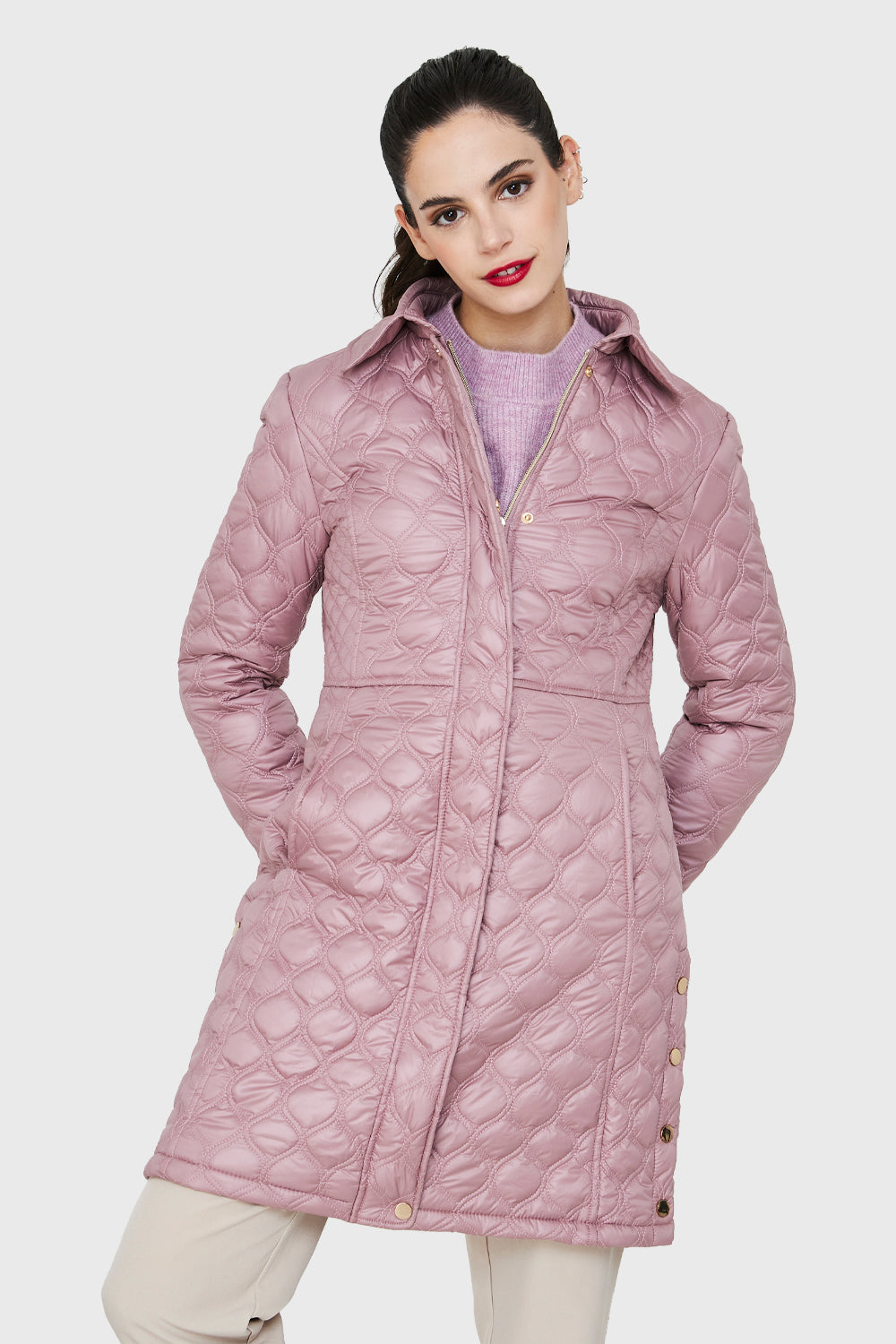 Características: Parka larga cuello camisero, con cierre frontal y broches. Posee bolsillos frontales y broches decorativos a los costados.