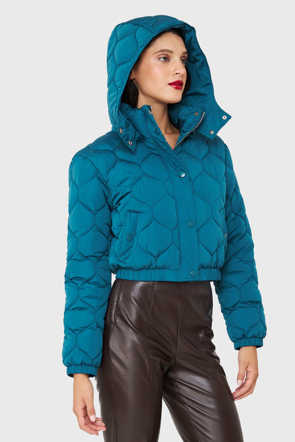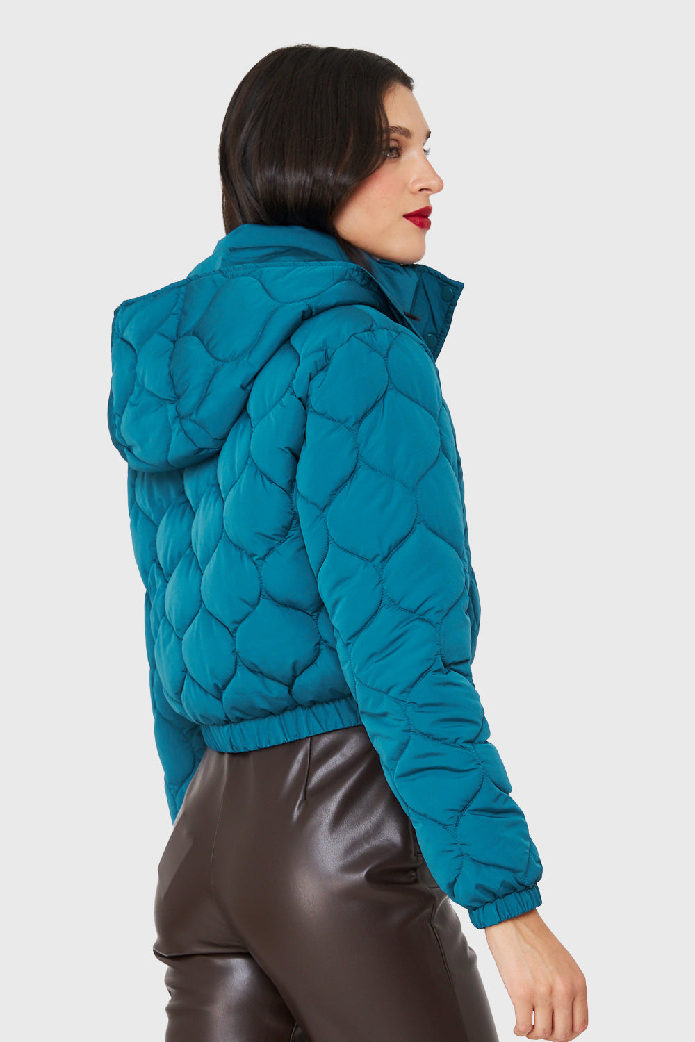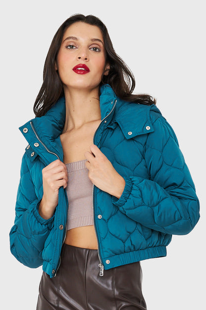 Parka Corta Quilt Con Gorro Azul Cobalto