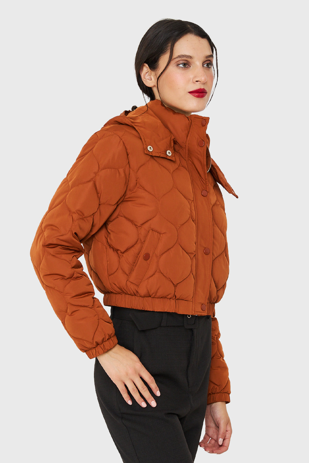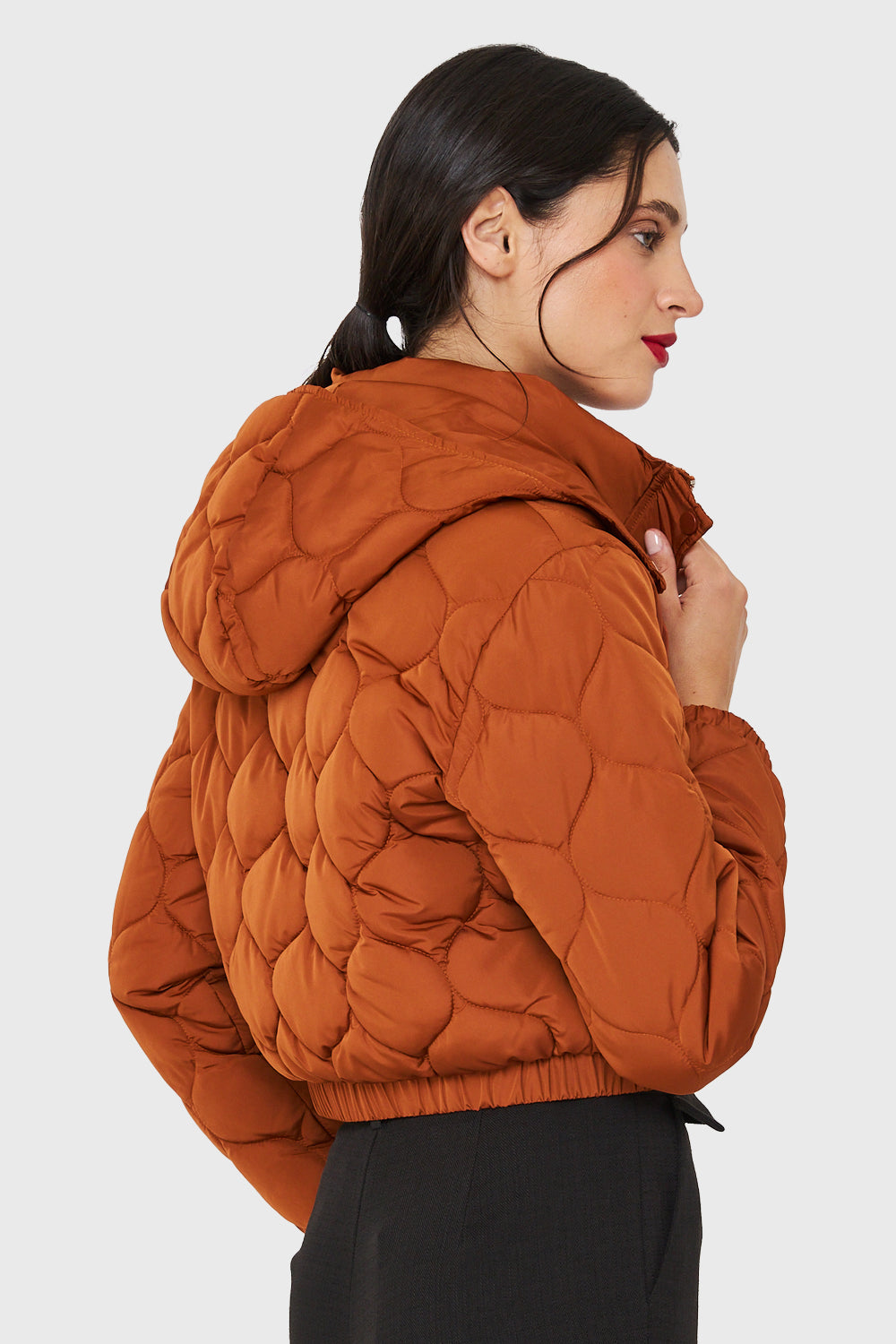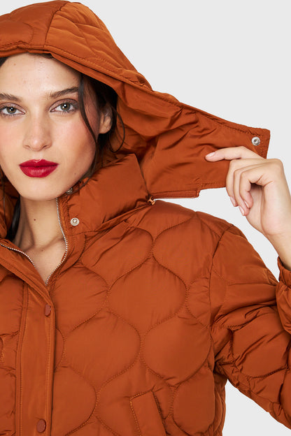 Parka Corta Quilt Con Gorro Óxido