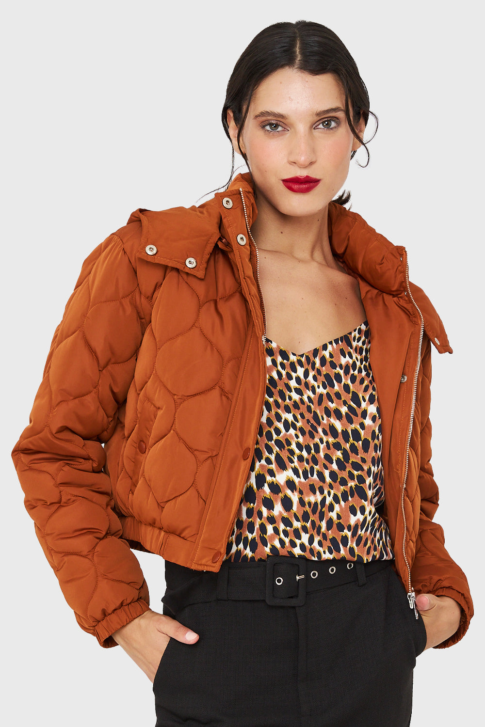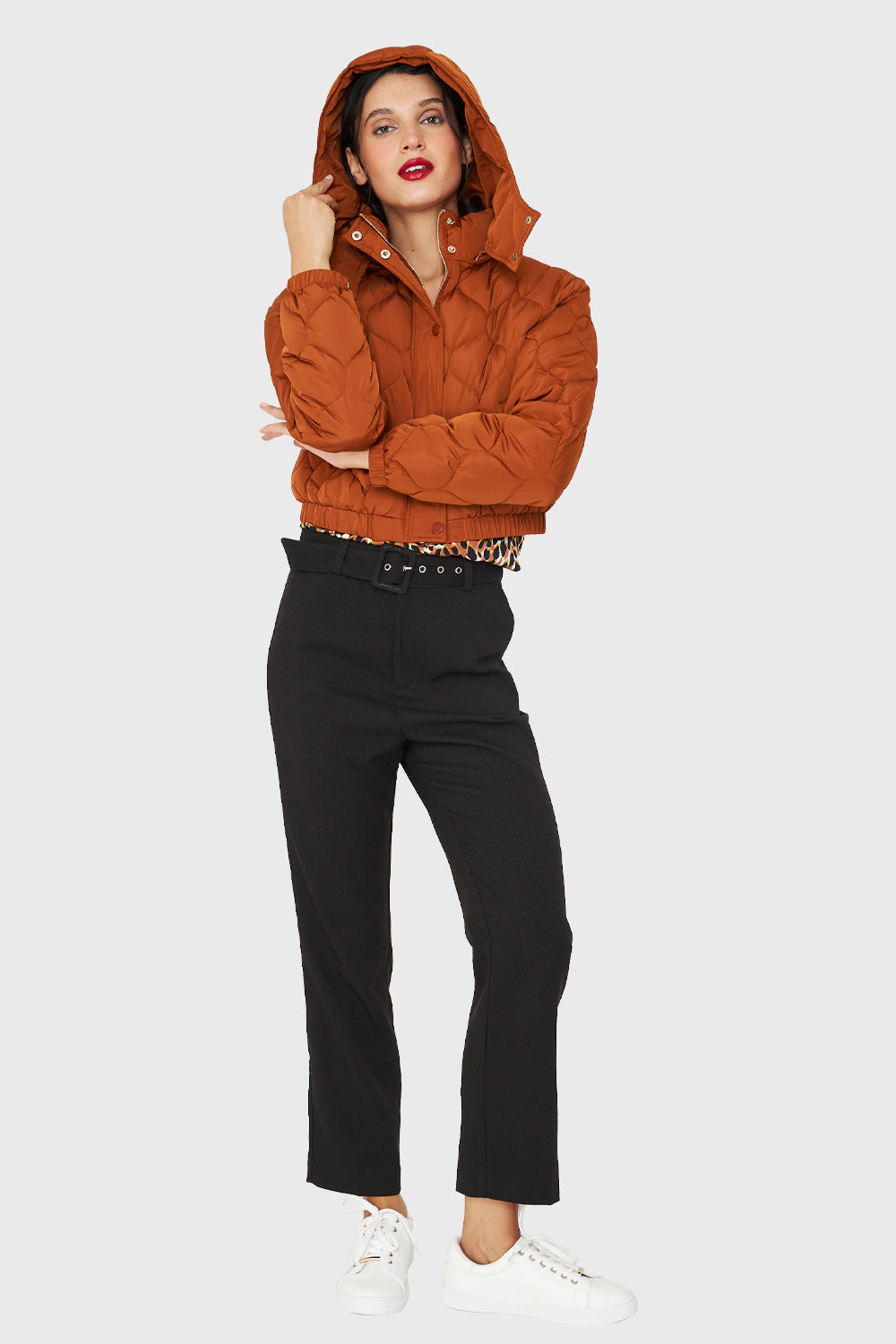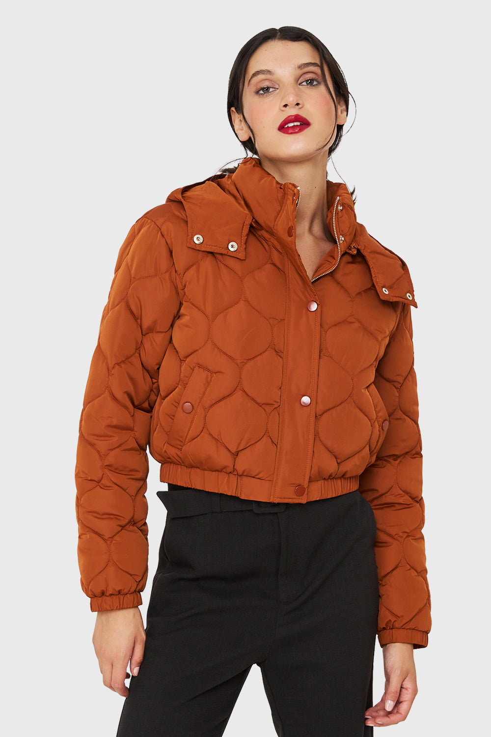 Parka Corta Quilt Con Gorro Óxido