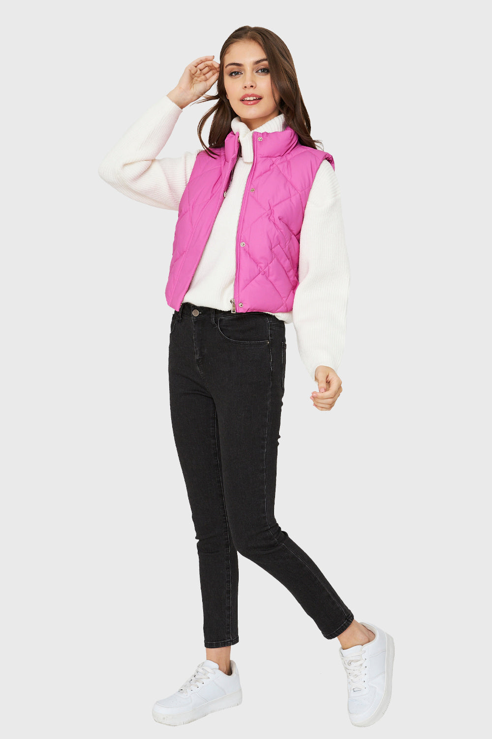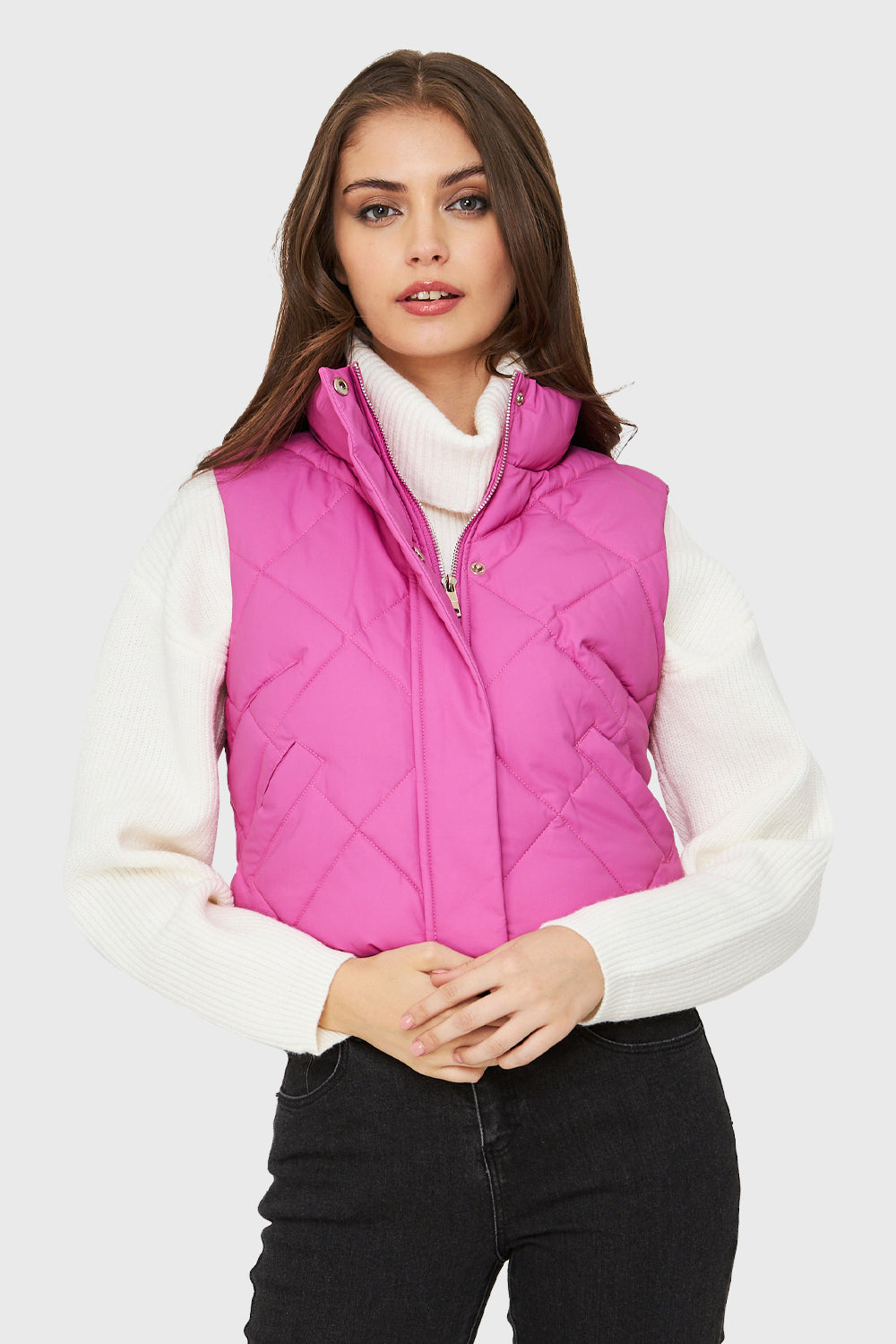Parka Corta Sin Mangas Fucsia