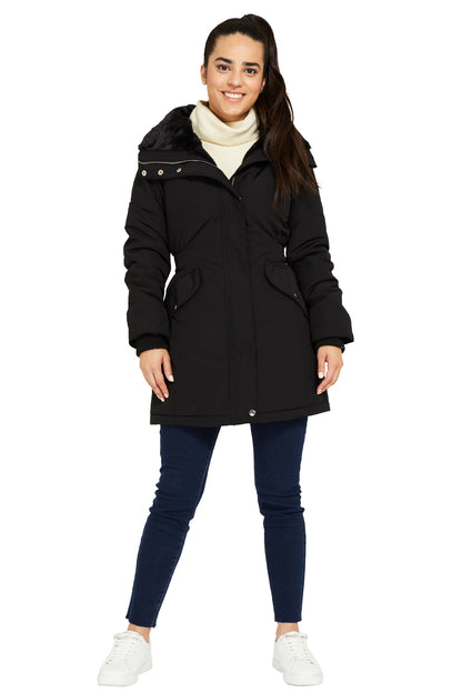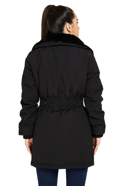 Características: Parka cuello alto. Cierre frontal con broches de ajuste. Bolsillos con broche de ajuste. Broche de ajustes en la cintura. Puños ajustables.