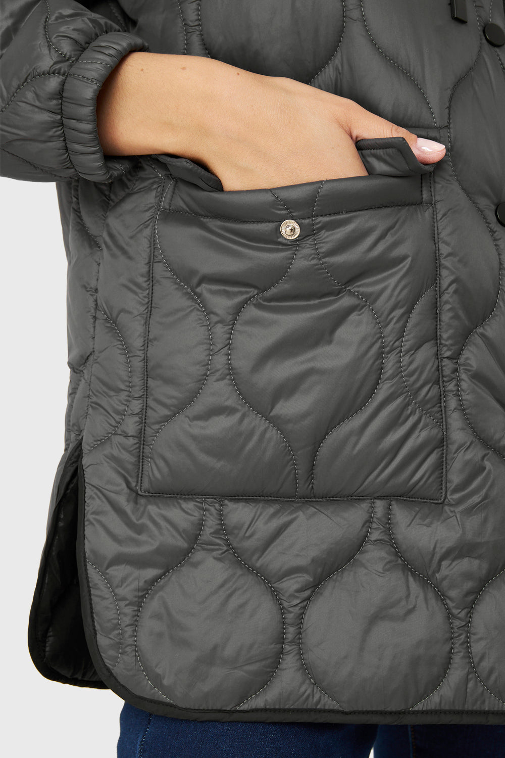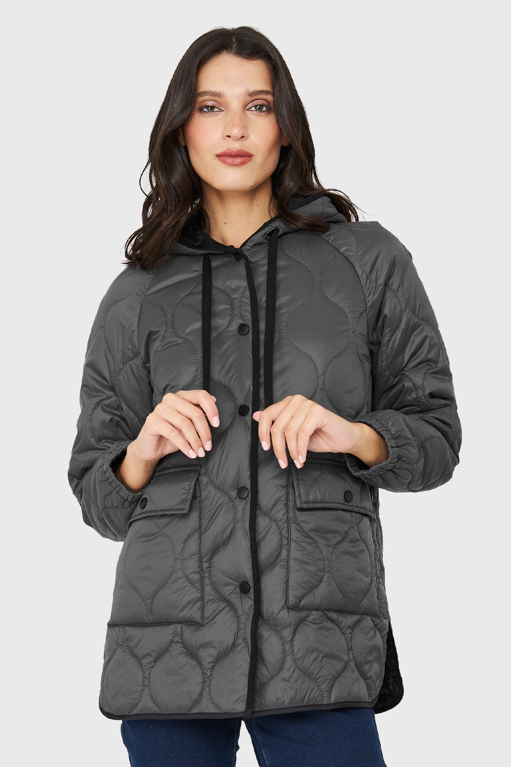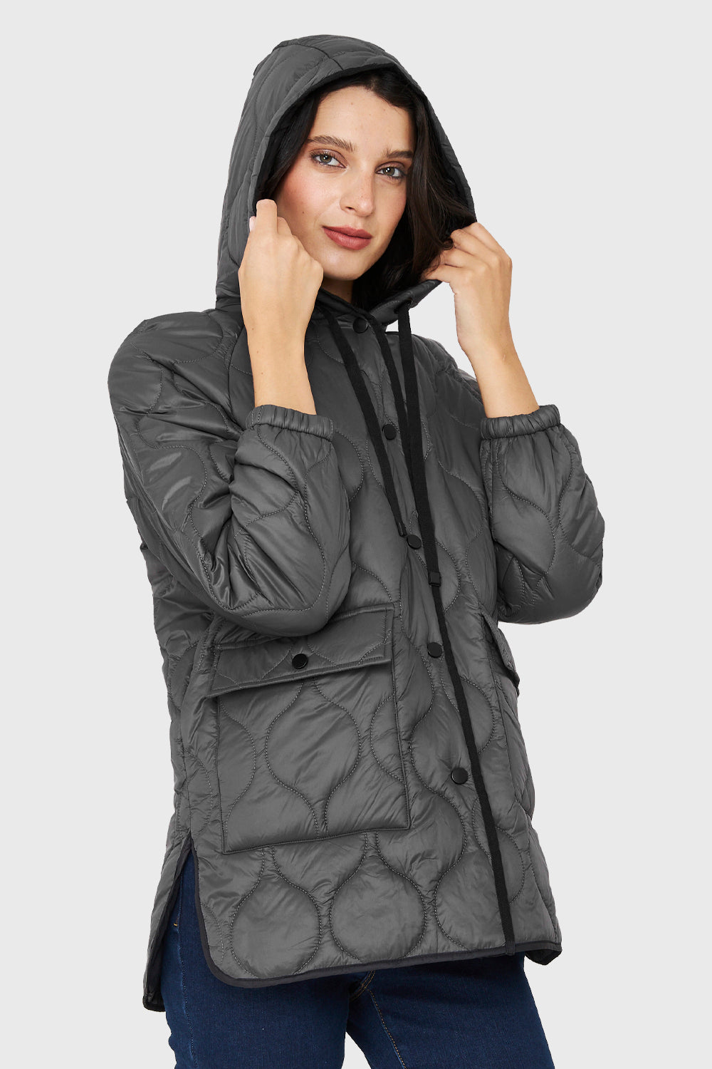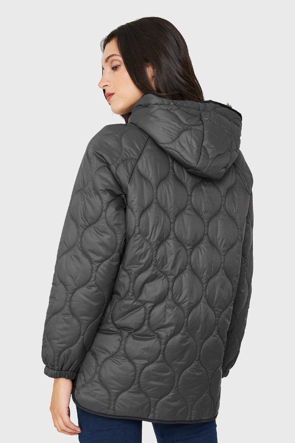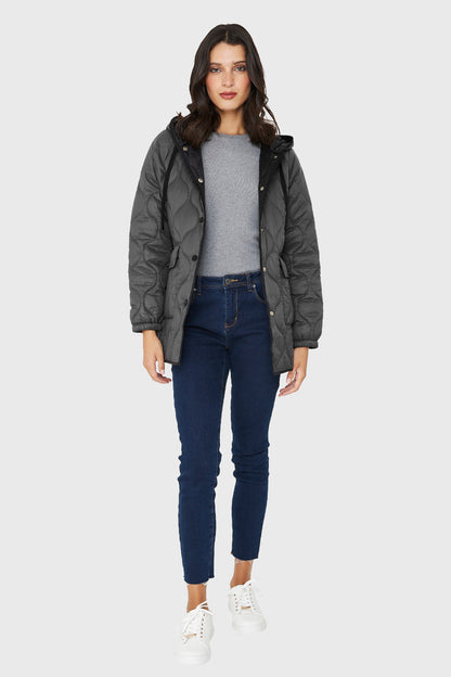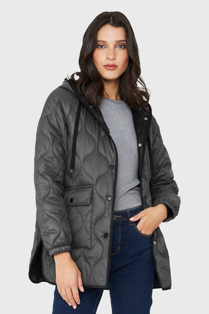 Parka Midi Tipo Quilt Bolsillos Gris