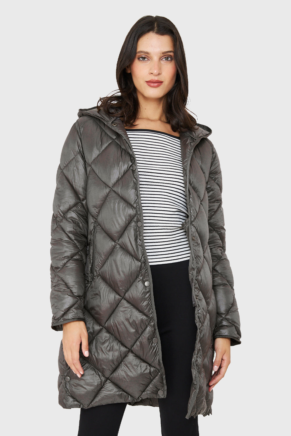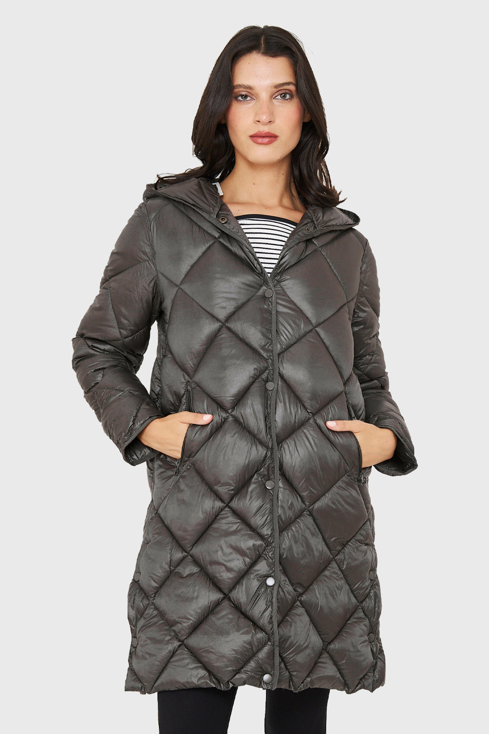 Parka Quilt Broches Gris Brillante