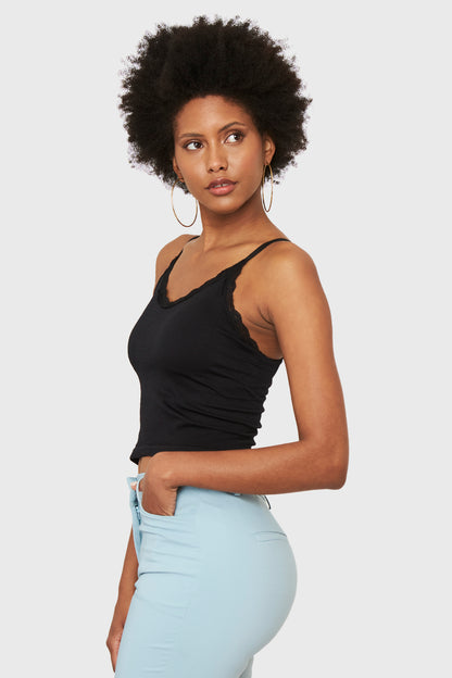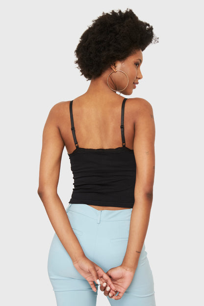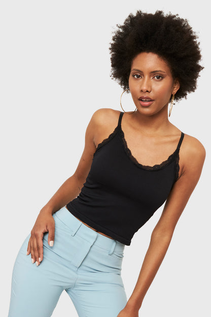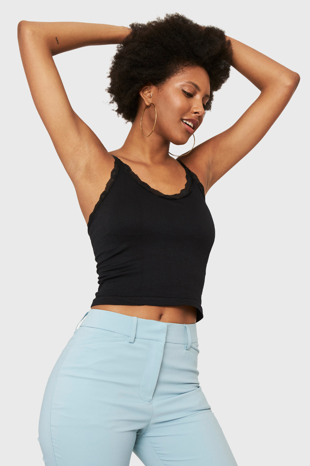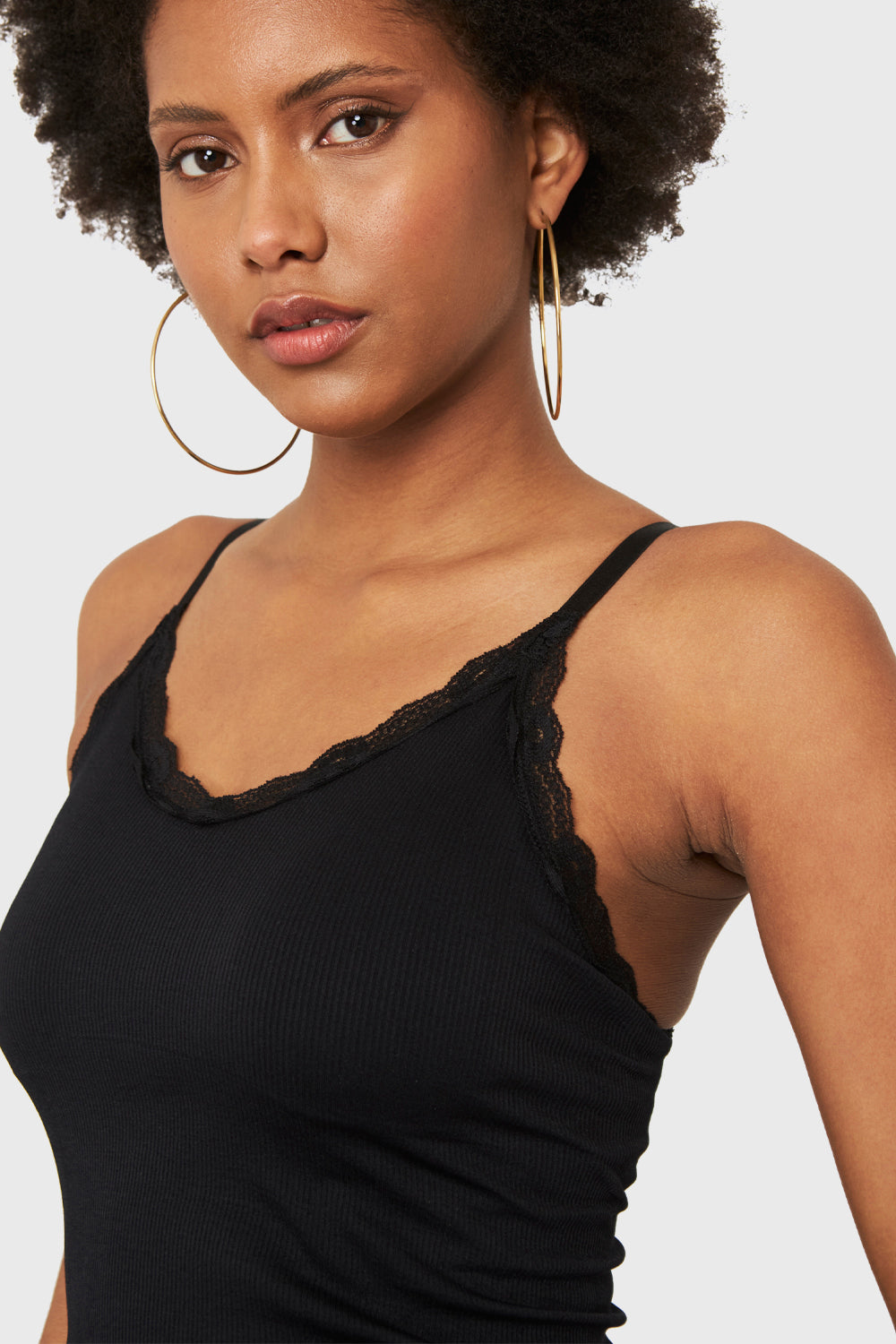 Características: Peto acanalado con tirantes ajustables. Escote en V con detalle de encaje. Almohadillas internas que no son extraíbles.