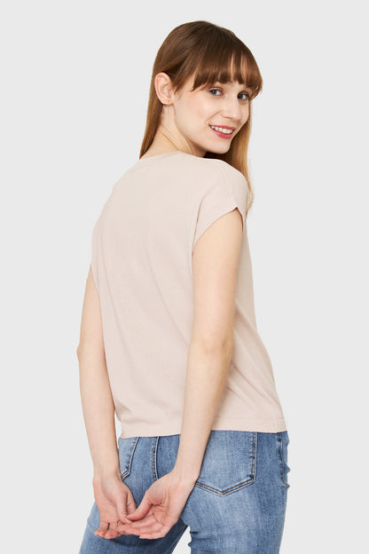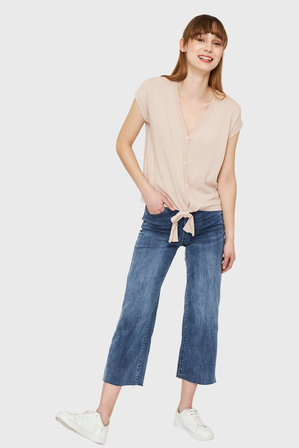 Características: Polera manga corta tipo tejido. Escote en V con botones de ajuste. Lazo de ajuste en parte inferior.