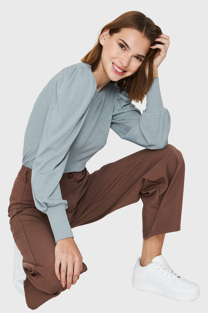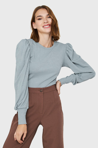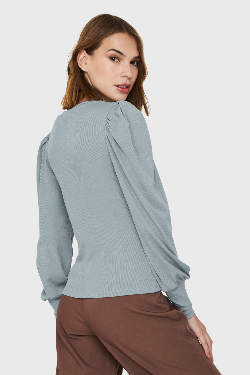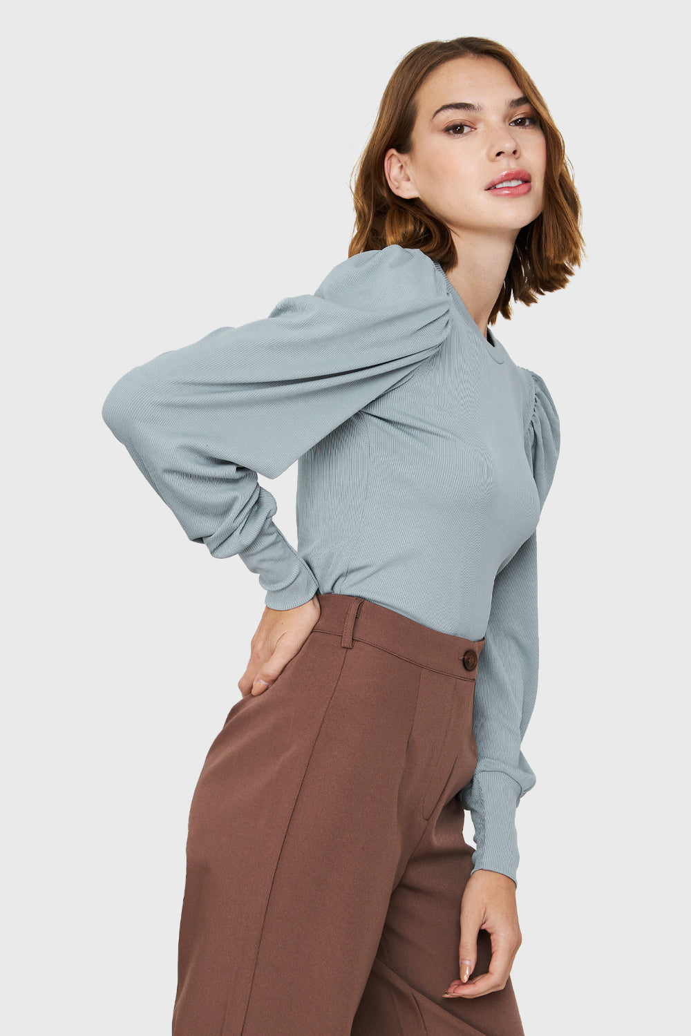 Características: Polera acanalada manga larga tipo princesa. Posee hombreras. Cuello redondo.